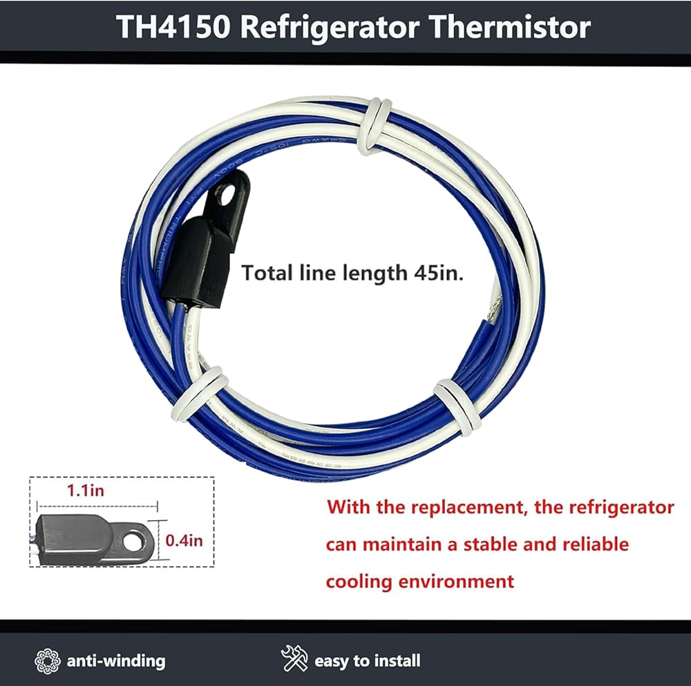 Refrigerator Thermistor TH4150 With the replacement the refrigerator can maintain a stable and reliable cooling environment For your safety please disconnect and wear gloves We offer one year free replacement