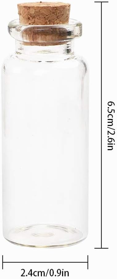 • ❤ 40 sturdy small glass bottles with Cork Stoppers - Bottle mouth diameter: 0.6 inch (1.6cm), bottle height(Without Cork): 1.8inch (4.5cm), bottom diameter: 0.7 inch (1.7cm).