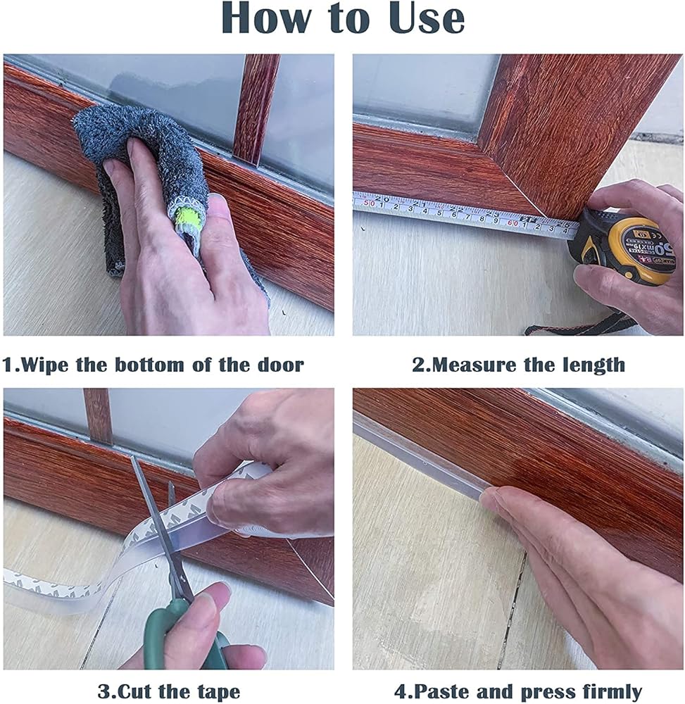 Silicone Door Bottom Seal Strip Tape, Transparent Weather Stripping for Waterproof, Windproof, Dust Proof, Weatherproof, Soundproof, Insects Proof