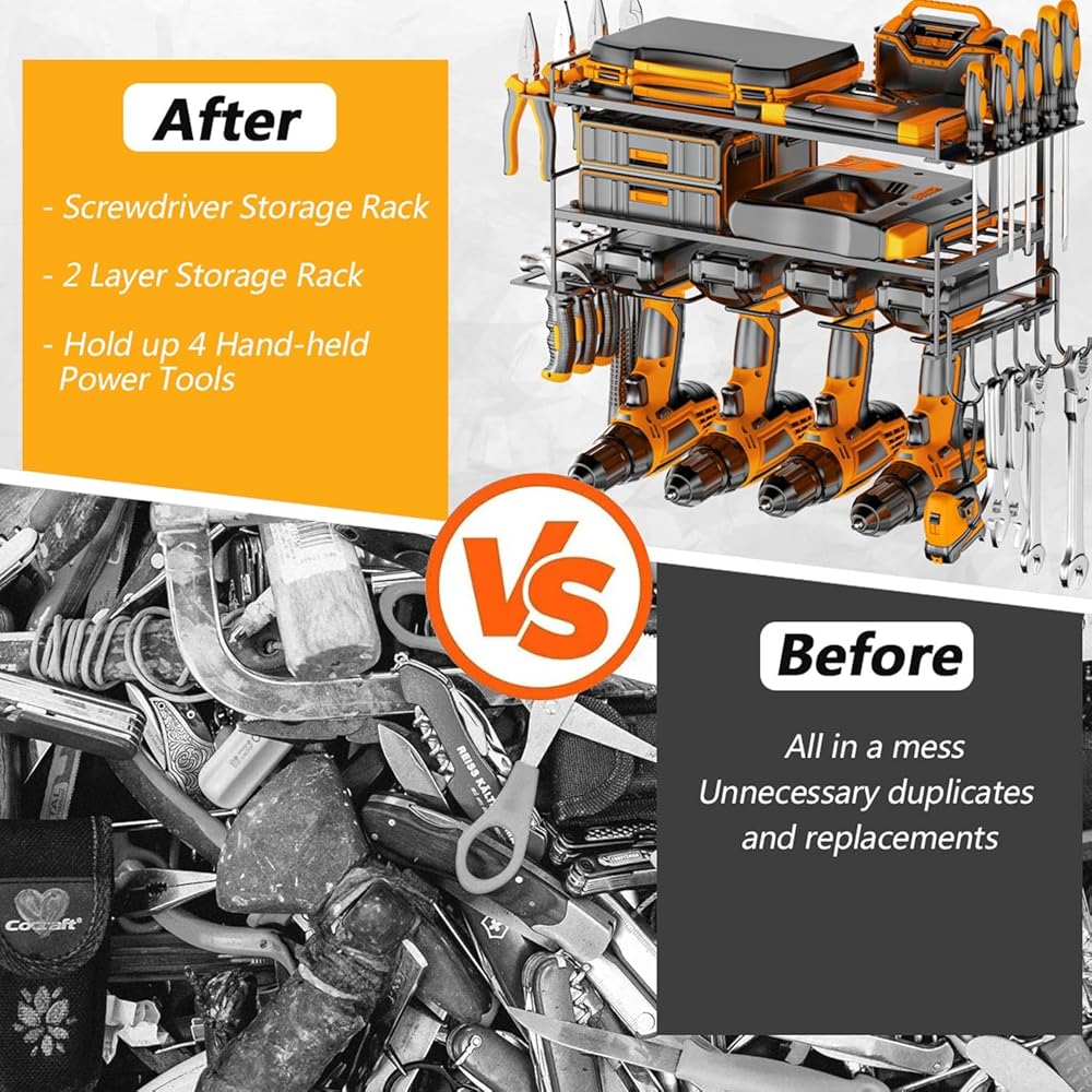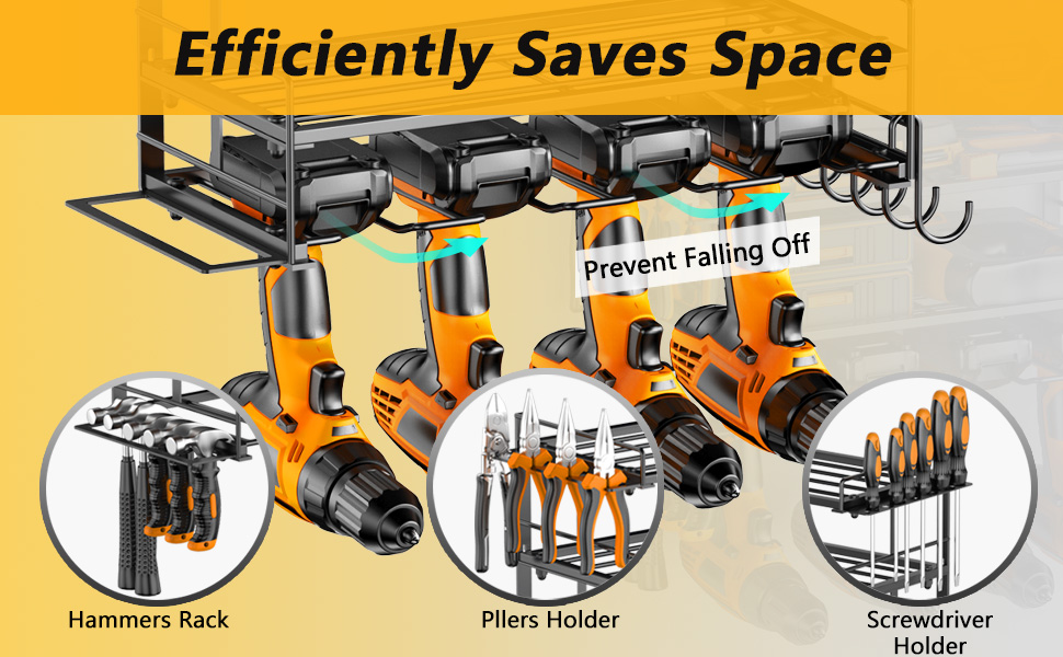 تصميم مدمج ومكان عمل متعدد الاستخدامات - رف تخزين الأدوات الكهربائية الخاص بنا مناسب للاستخدام الداخلي والخارجي ومتوافق مع لوحات التعليق. مثالية لأي مناسبة، سواء كانت في الجراج، أو غرفة الأدوات، أو حتى مثبتة على جوانب شاحنة العمل. يضمن تصميمه المدمج ملاءمته بشكل مريح لأي مساحة، مما يجعله مثاليًا للجراجات أو ورش العمل أو الاستوديوهات كإضافة عملية.