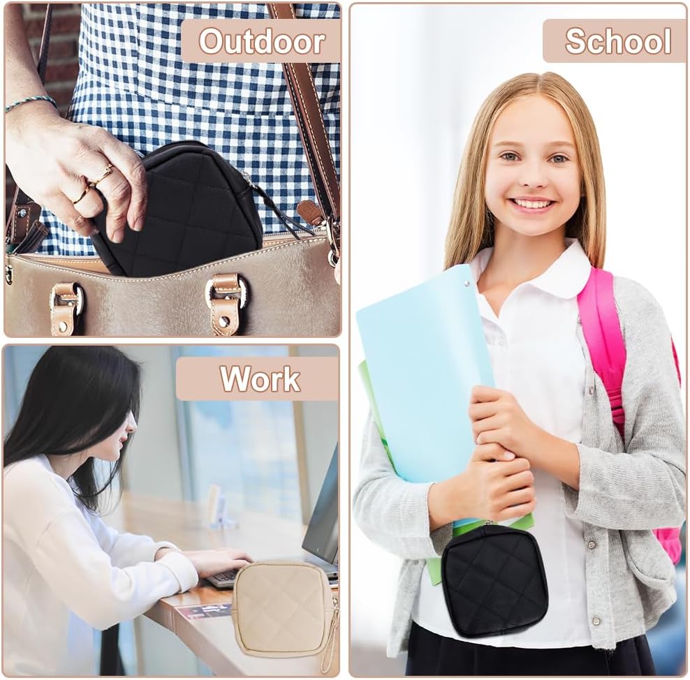 👝【صغيرة الحجم وقابلة للحمل】 سوف تحصل على حقيبتين بألوان مختلفة، يبلغ قياسهما حوالي 5.2 × 5.2 بوصة، كل حقيبة يمكن أن تحمل 5 إلى 8 مناديل صحية يومية أو 3 إلى 4 مناديل صحية ليلية، صغيرة جدًا وسهلة وضعها في صندوق. حقيبة ظهر أو حقيبة يد، مريحة للسفر معها.