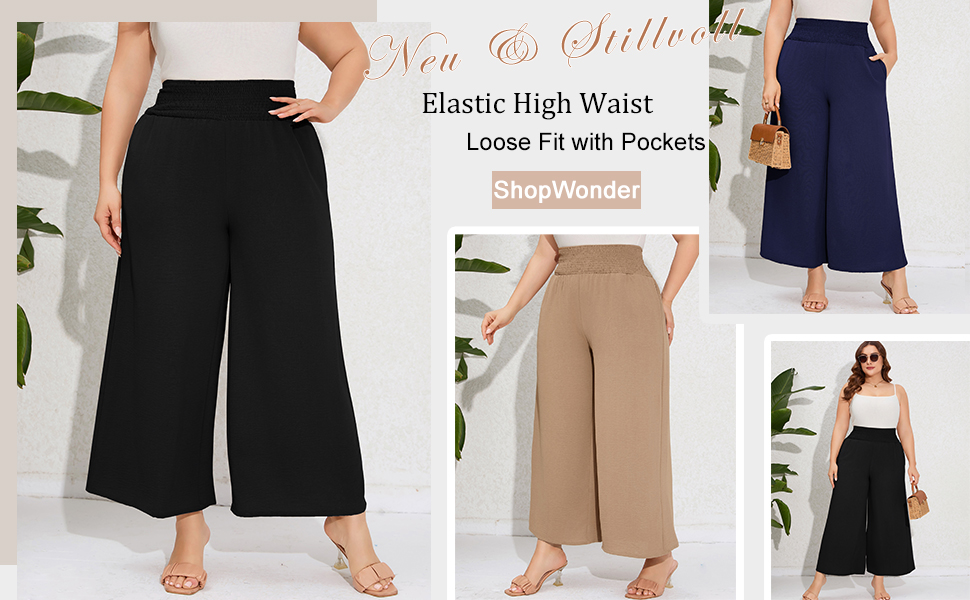 القماش: هذا البنطلون ذو الخصر العالي والساقين للنساء ذوات المقاسات الكبيرة مصنوع من نسيج ناعم، وهو مريح وخفيف الوزن وجيد التهوية.