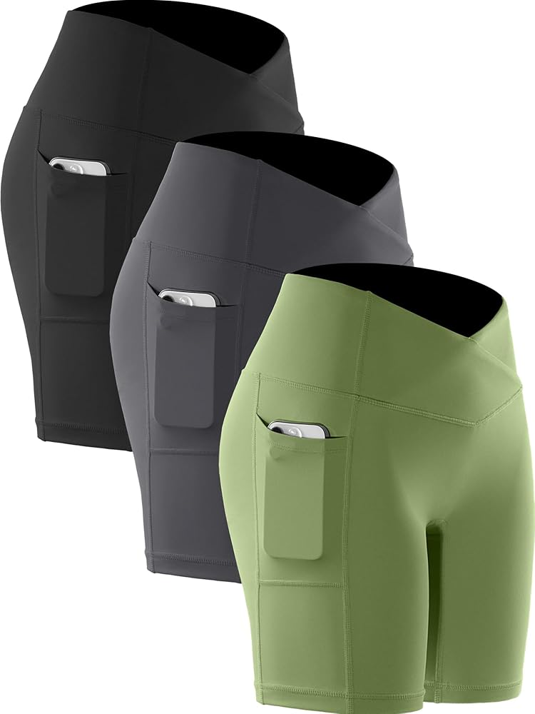 CADMUS 3 قطع من شورتات اليوجا النسائية ذات الخصر على شكل حرف V، شورتات مضغوطة لراكبي الدراجات النارية، جيوب جانبية عميقة