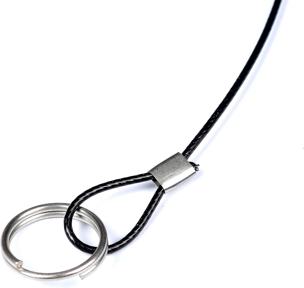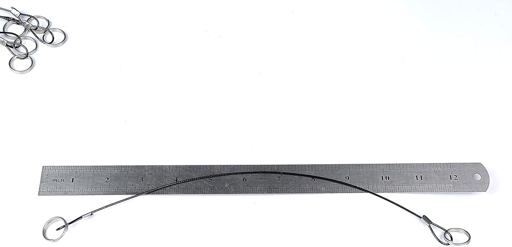 Measurement Size(Appr.): stainless steel lanyard tether loops with 1.5mm dia thickness, lightweight. Total length 12 inch. Short wire rope with double loops. Ended loops size: the loops locked with aluminum crimping clamps sleeves, Can't be adjusted.