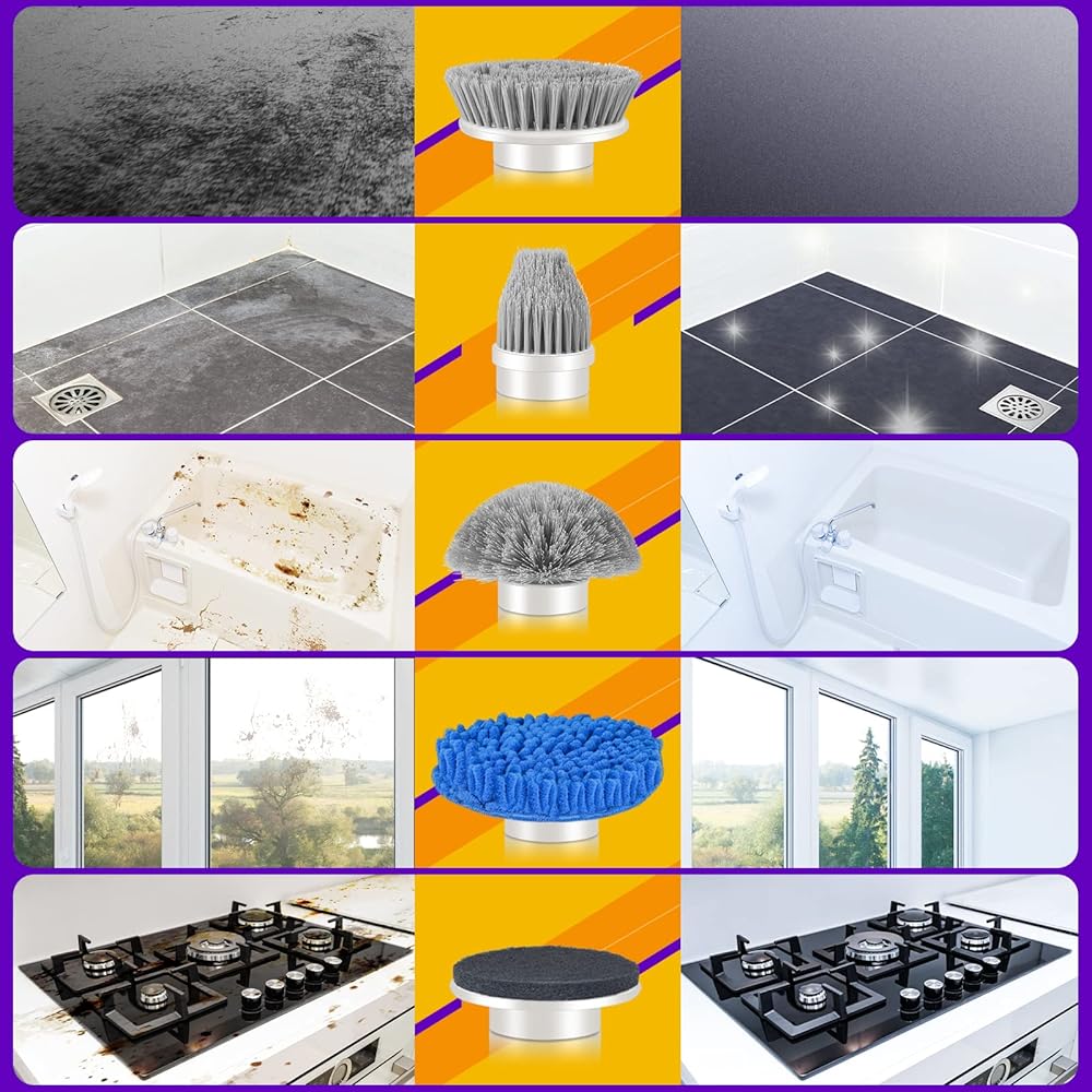 • 💯{𝟓 𝐇𝐈𝐆𝐇-𝐐𝐔𝐀𝐋𝐈𝐓𝐘 𝐂𝐋𝐄𝐀𝐍𝐈𝐍𝐆 𝐁𝐑𝐔𝐒𝐇 𝐇𝐄𝐀𝐃𝐒}: The multifunctional electric cleaning brush is equipped with 5 replaceable cleaning brush heads to meet the needs of different cleaning environments, such as bathrooms, bathtubs, floors, grouting, stoves, car wheels, windows, barbecue grills, etc. The bristles are made of hard PC material, which can effectively remove stains and are easy to clean.