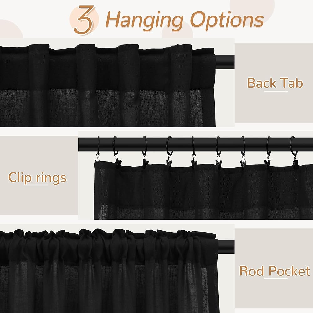 معلومات أساسية: تتضمن لوحتين من الستائر الكتانية، عرض كل منهما 40 بوصة وطول 90 بوصة. قم بتعليق ألواح الستارة بثلاثة أشكال مختلفة: مع حلقات خلفية تخفي قضيب الستارة للحصول على تأثير مطوي أنيق، مع جيوب قضيب مقاس 3 بوصة للحصول على مظهر كلاسيكي، ومع حلقات مشبك لسهولة الإغلاق الانزلاقي (حلقات المشبك غير متضمنة). يمكنك أيضًا إقران هذه الستائر الجميلة بالستائر أو الظلال لمزيد من الشفافية والخصوصية.