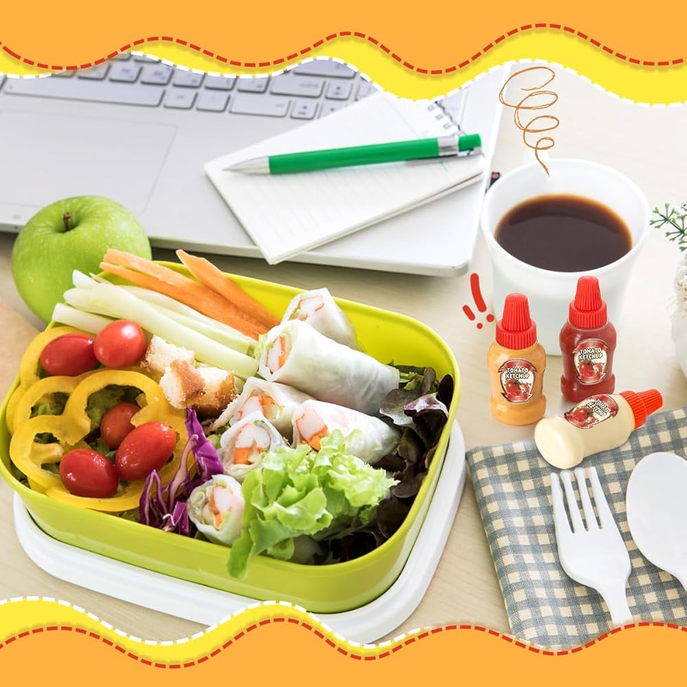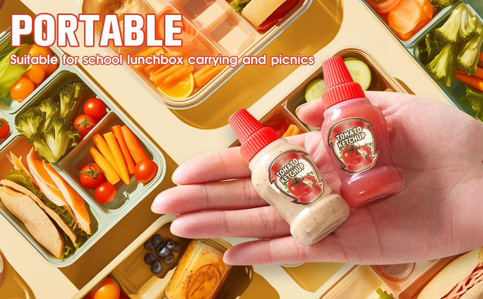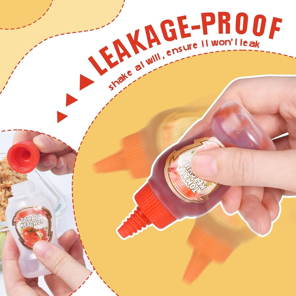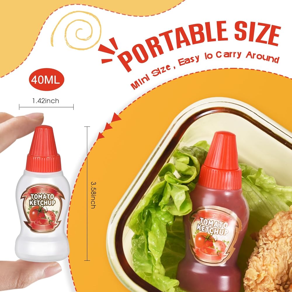 زجاجات صغيرة رائعة الحجم وقابلة للحمل: كل حاوية صغيرة من الصلصة بسعة 40 مل، وهي أكبر من الزجاجات الصغيرة العادية الموجودة في السوق، ويمكنك استخدامها لتوزيع المزيد من الصلصة. كما أنه خفيف جدًا وحجم مثالي لصناديق الغداء الخاصة بك أو الذهاب إلى العمل أو المدرسة أو النزهة أو السفر.