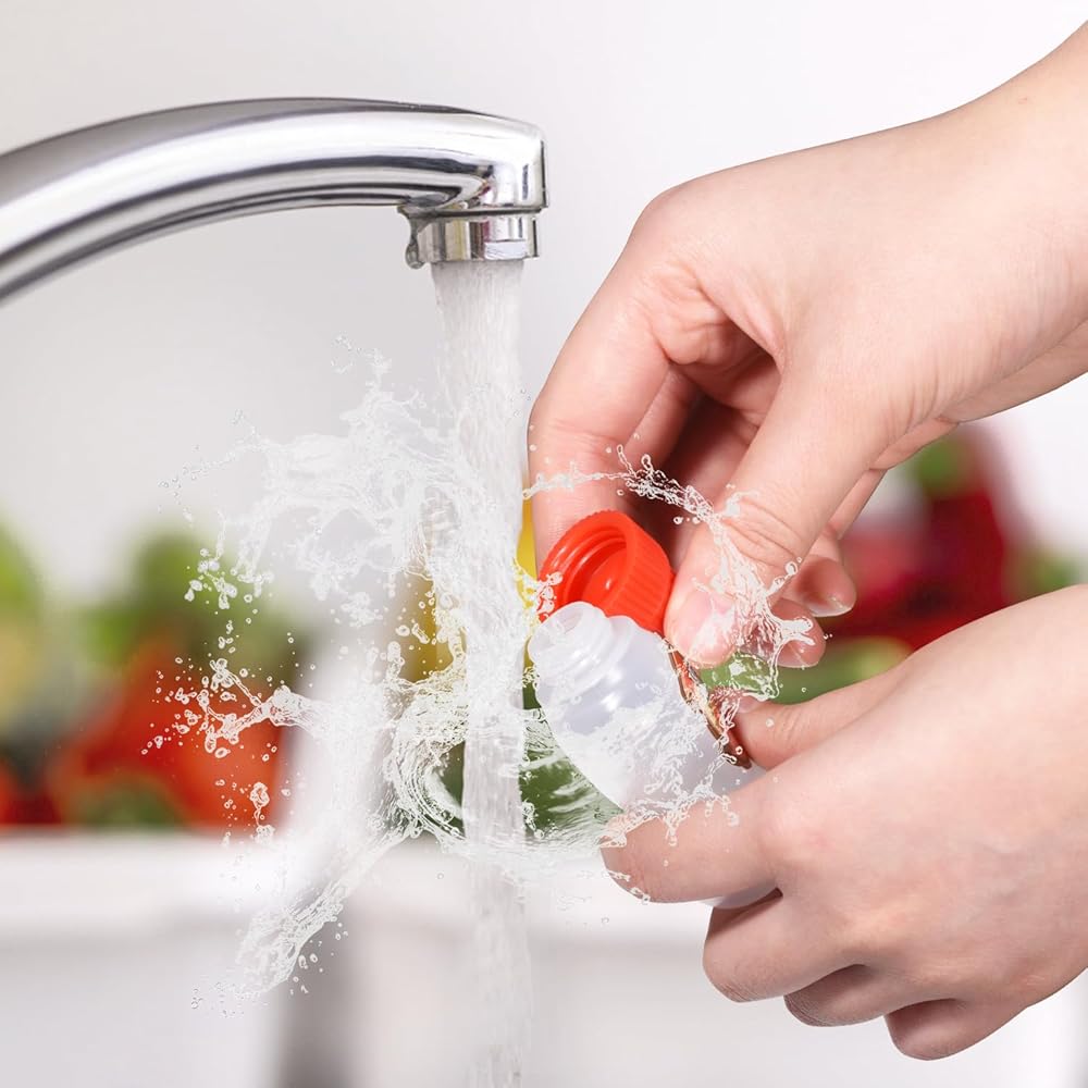 زجاجات التوابل سهلة الاستخدام: زجاجات الصلصة الصغيرة الخاصة بنا ناعمة وعيار الطرف 2.5 مم، وسهلة الضغط. الفتحة الكبيرة 12 مم، توزيع وتنظيف مريح. يوصى بغسله بالماء فقط، وليس آمنًا للغسل في غسالة الأطباق.