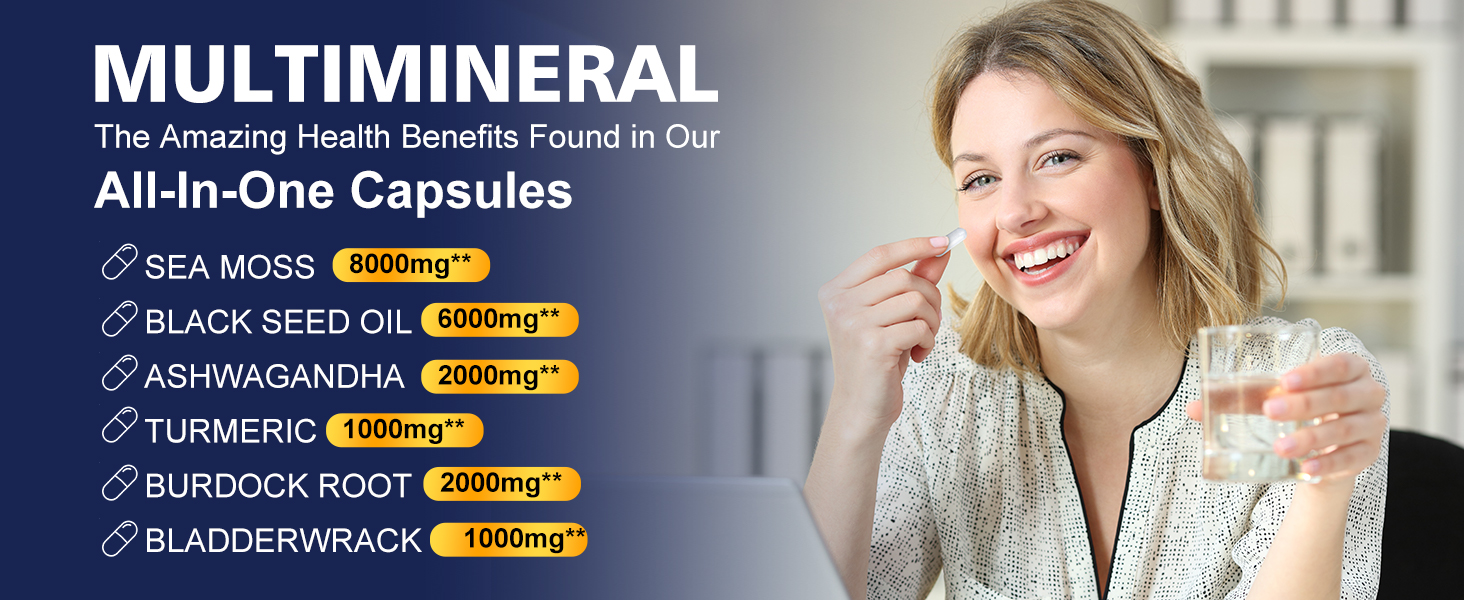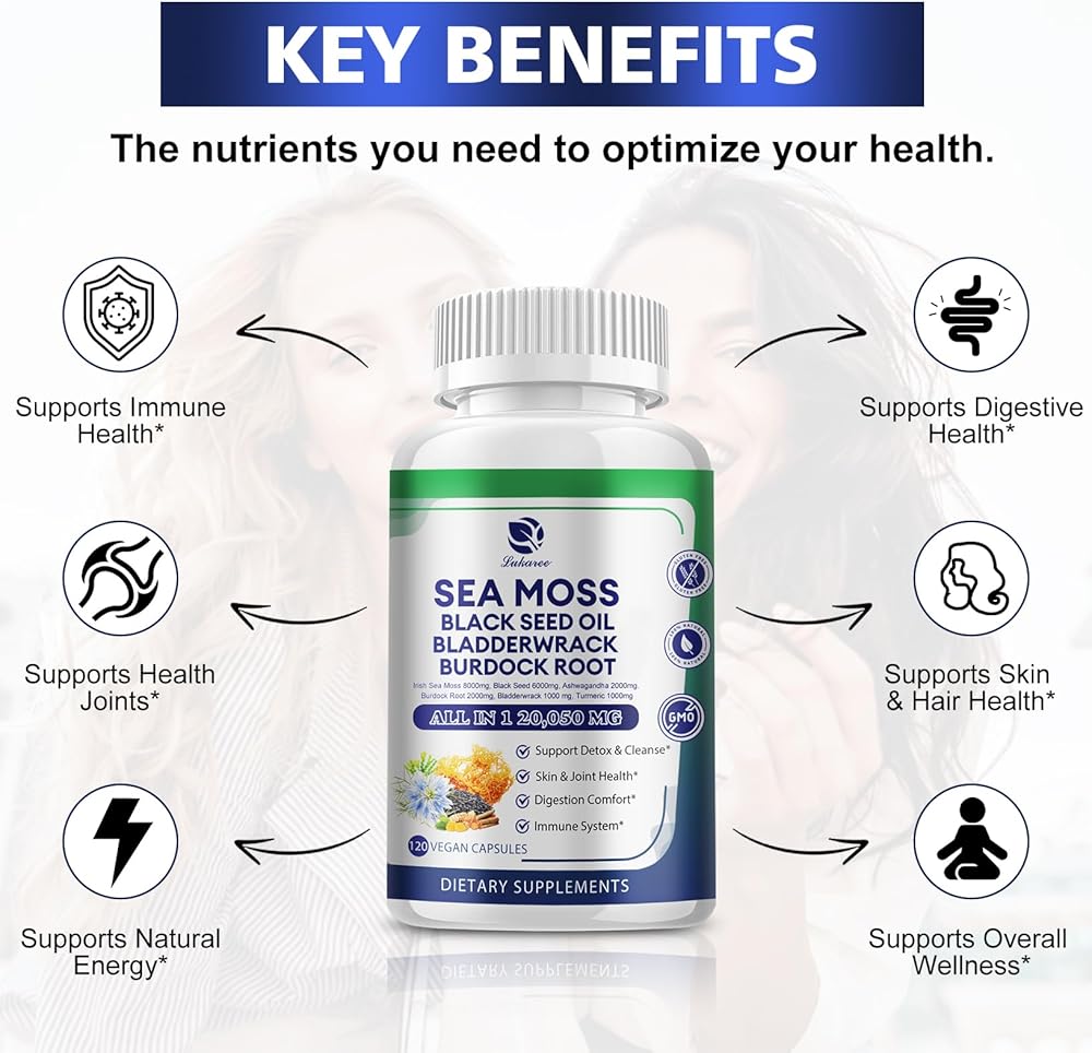 • الدعم الصحي الشامل: زيت الحبة السوداء Seamoss اشواغاندا جذر الأرقطيون مفيد للغاية لصحتنا. يعد هذا خيارًا رائعًا لأولئك الذين يريدون أن يتمتعوا بصحة أفضل ويعد أفضل هدية للأصدقاء والعائلة. عزز صحتك العامة بكبسولتين فقط يوميًا!