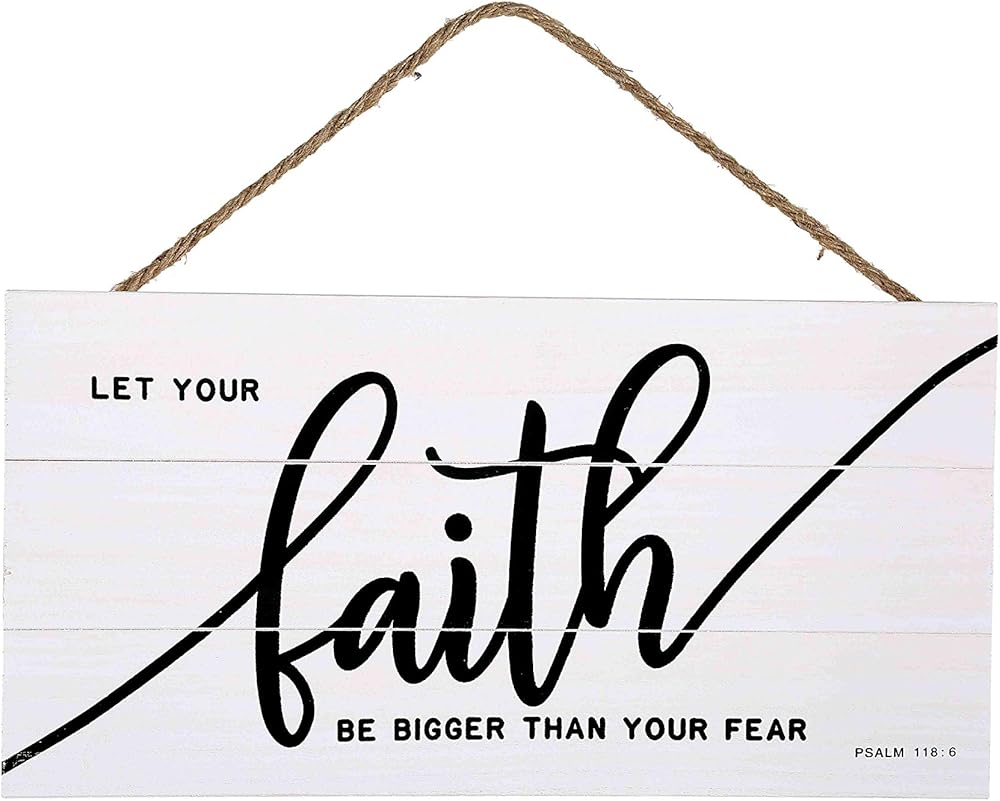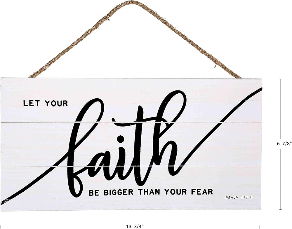 لافتة معلقة على شكل لوح خشبي من الإيمان أكبر من الخوف لديكور المنزل (13.75 × 6.9 بوصة مع خلفية بيضاء)