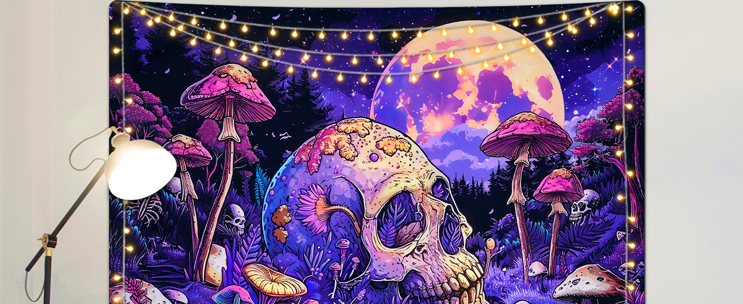 【تصميم فريد】: نسيج الفطر مع تقنية الطباعة عالية الدقة المتقدمة، والتفاصيل الرائعة والألوان الزاهية تجعله لوحة فنية جدارية مذهلة تعزز الغموض العام لأي غرفة.