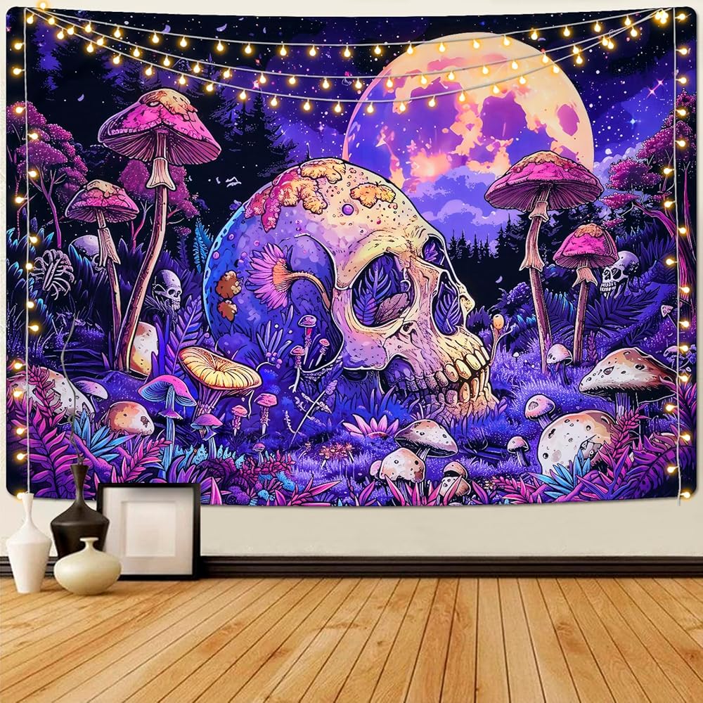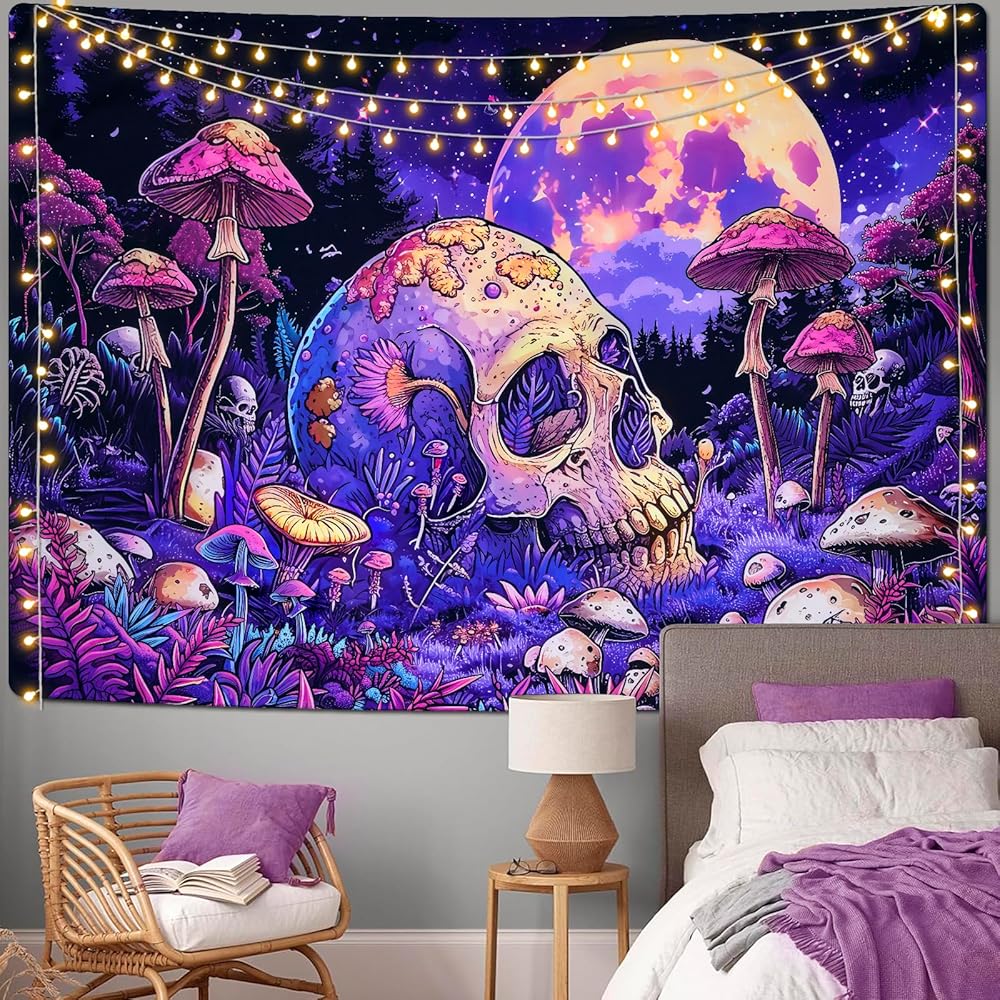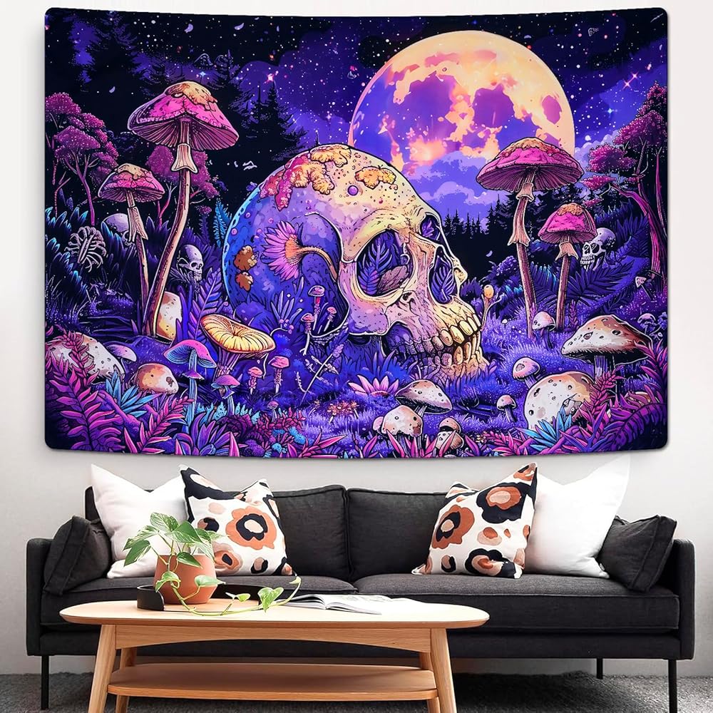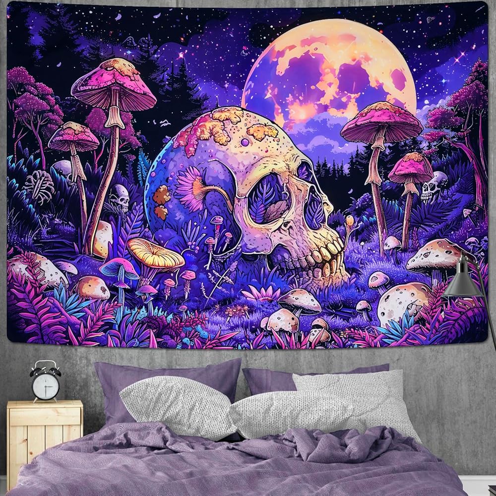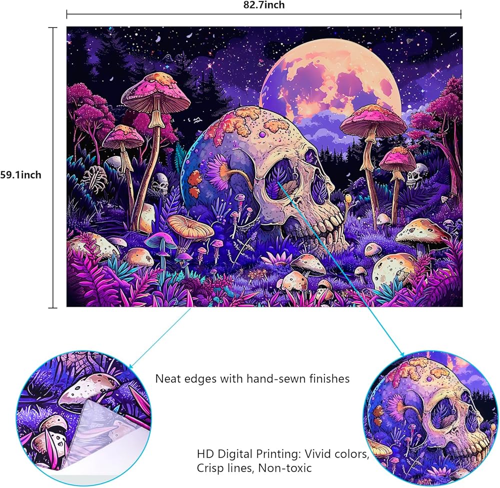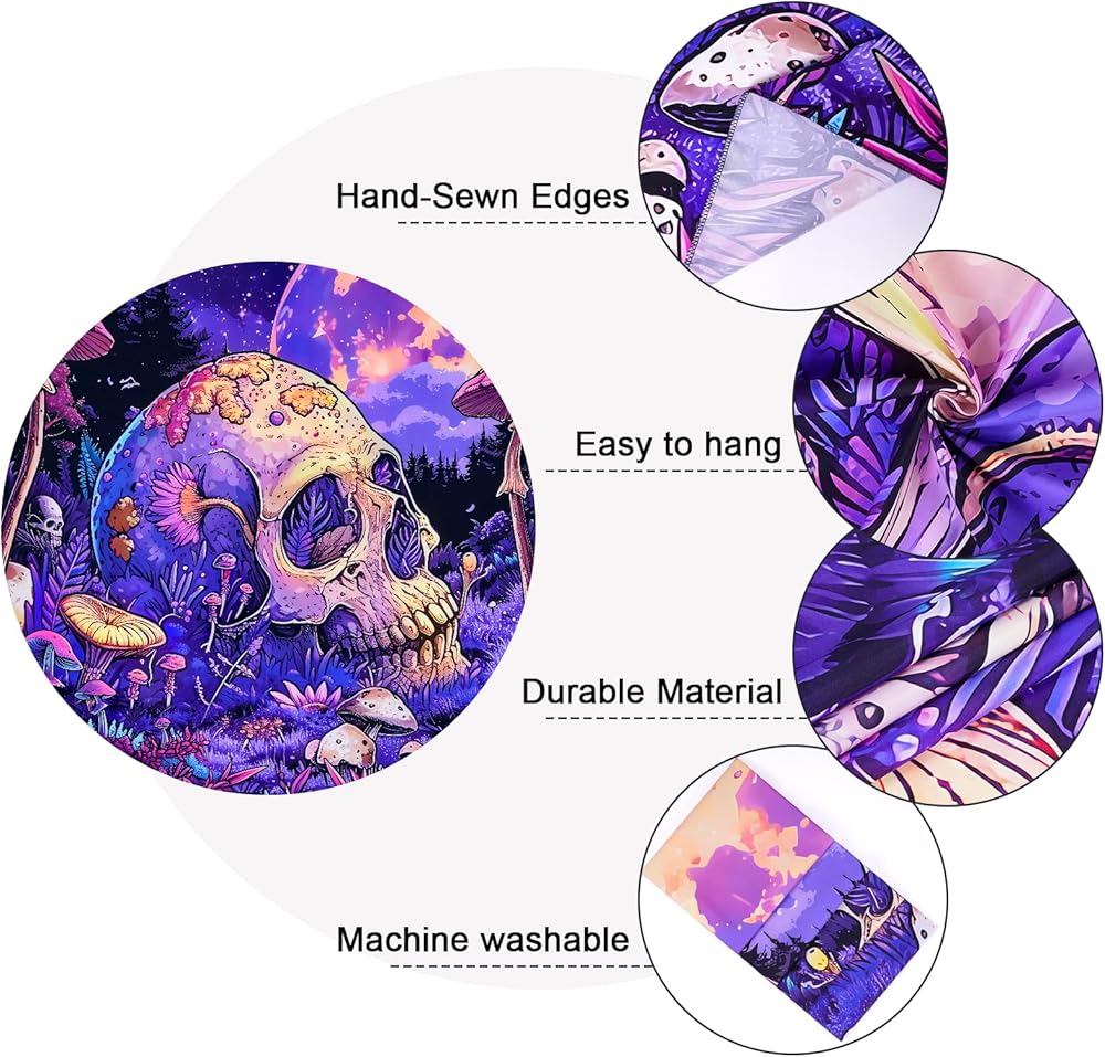 【خامة فاخرة】: نسيج الجمجمة مصنوع من نسيج البوليستر بنسبة 100%، متين وخفيف الوزن وليس من السهل أن يبهت. القماش ناعم الملمس للغاية ولن يسبب الحساسية لبشرتك، مما يجعله مثاليًا للاستخدام كمفرش سرير أو معلق على الحائط أو بطانية الشاطئ.