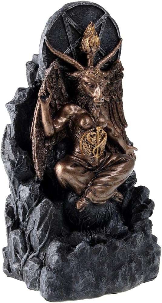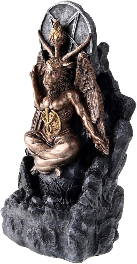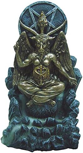 This mystical Incense Burner is the perfect symbol of free-thinking heresy. Resting under a large pentagram sits the Baphomet, symbolising the total sum of the universe. Legs ending in cloven hooves, the staff of Asclepius rises from their crotch. Their right arm is raised in a magical blessing, while their left arm is stretched downwards and outwards invitingly. Cast in high-quality resin before being carefully hand-painted, this piece is perfect for holding one of your favourite incense cones.