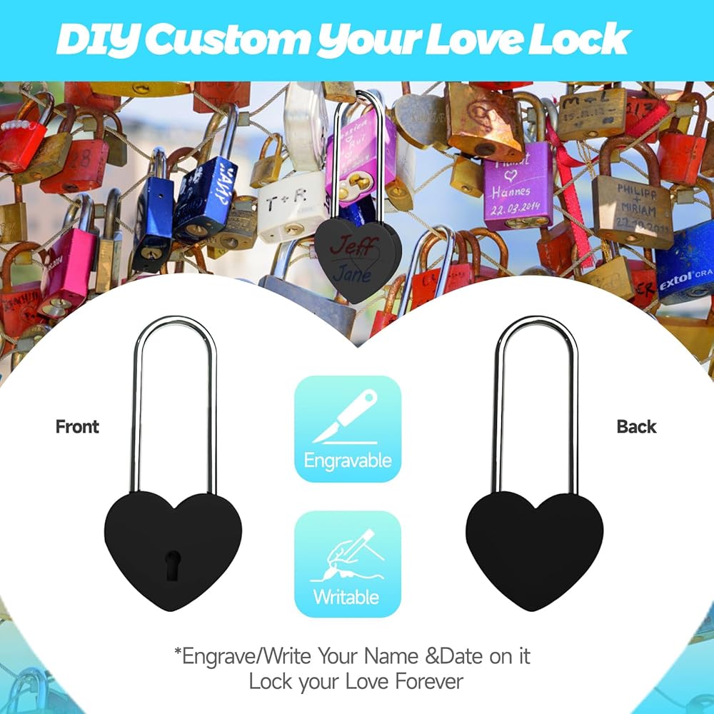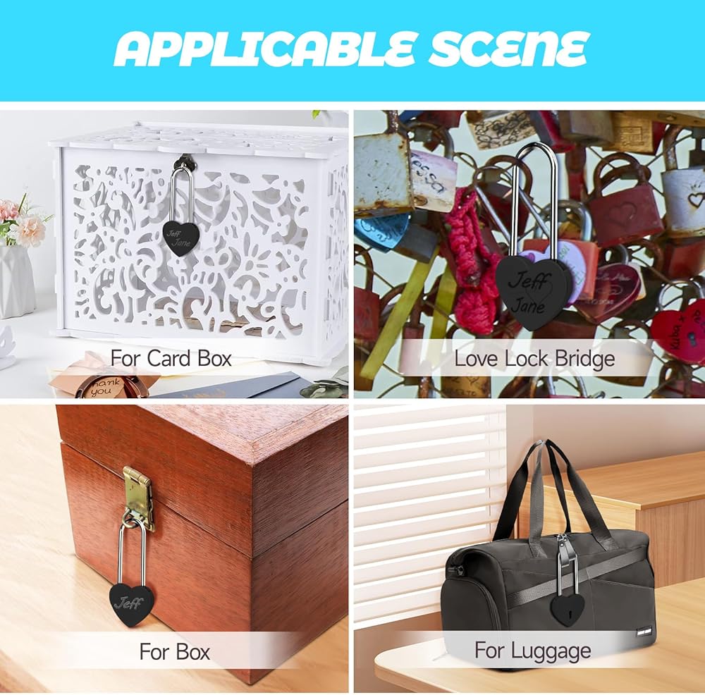 💕🔐الاستخدام: قفل الحب اللطيف للغاية، يمكنك نقش أسمائك وإرفاقه بجسر قفل الحب؛ أو استخدمه في صندوق المجوهرات، وكتاب اليوميات، وصندوق البطاقات