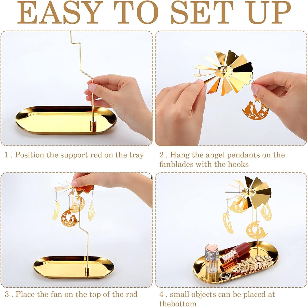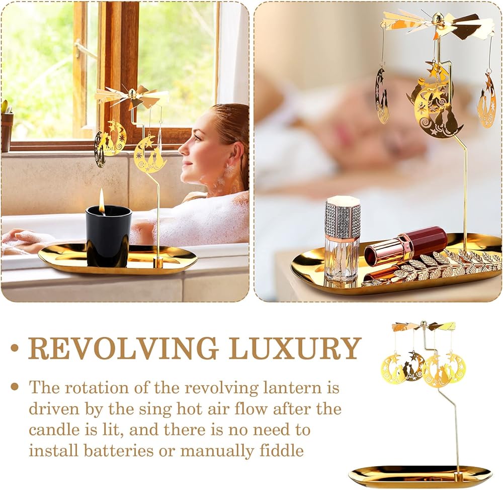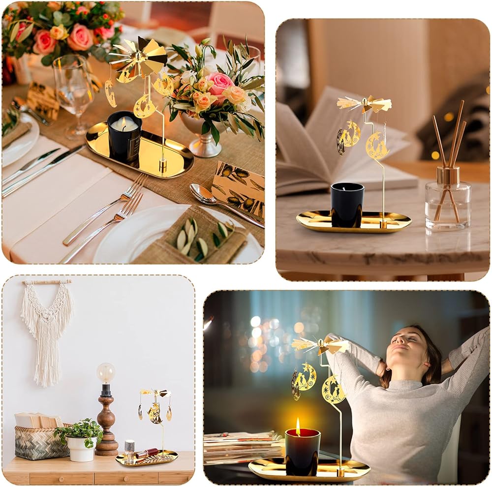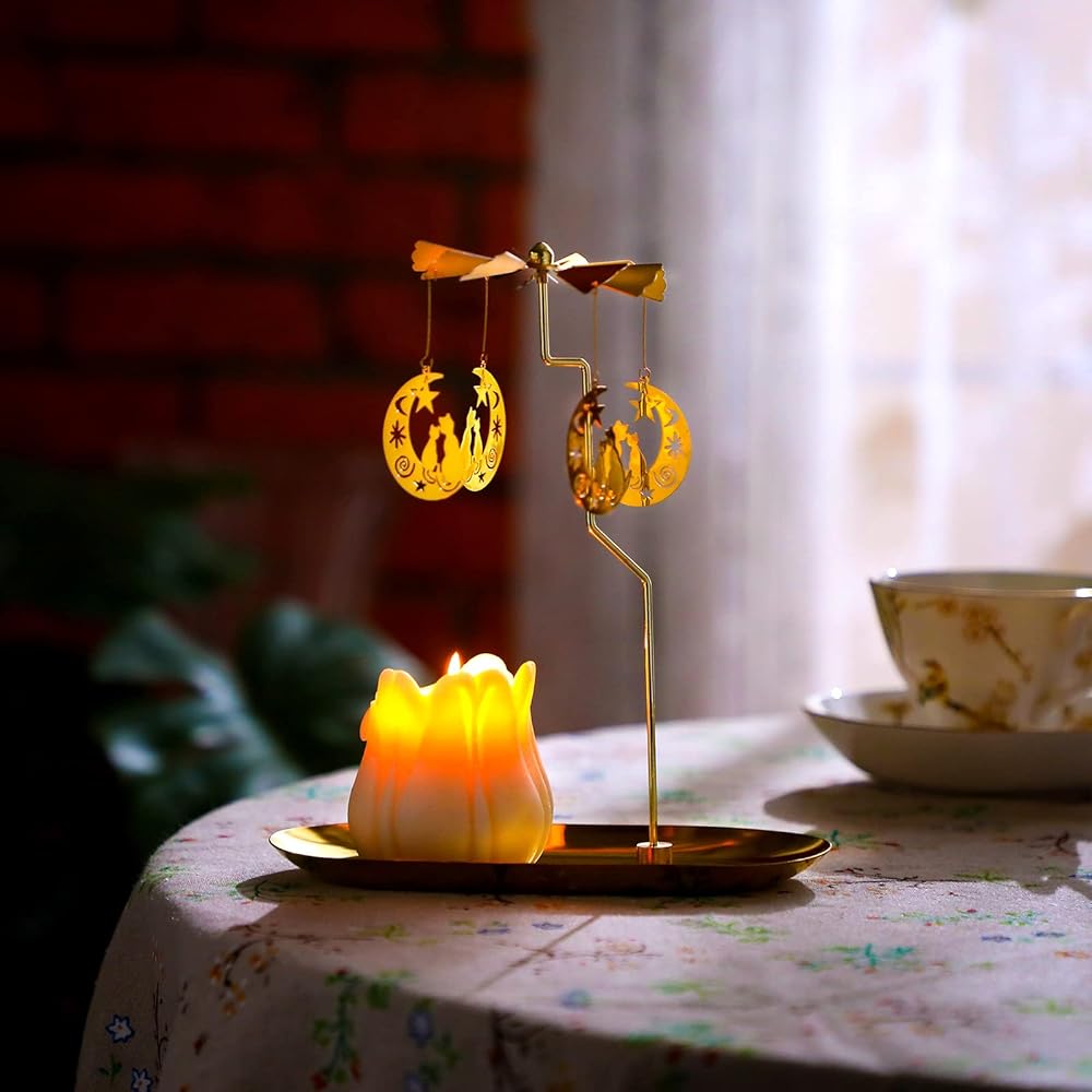 • No Need to Charge or Battery: the rotating candle holders are convenient to use, and you just need to light the candle, and the top of the candlestick rotates with the heat of the lit candle; The dancing flame and the rotating pendant are very attractive