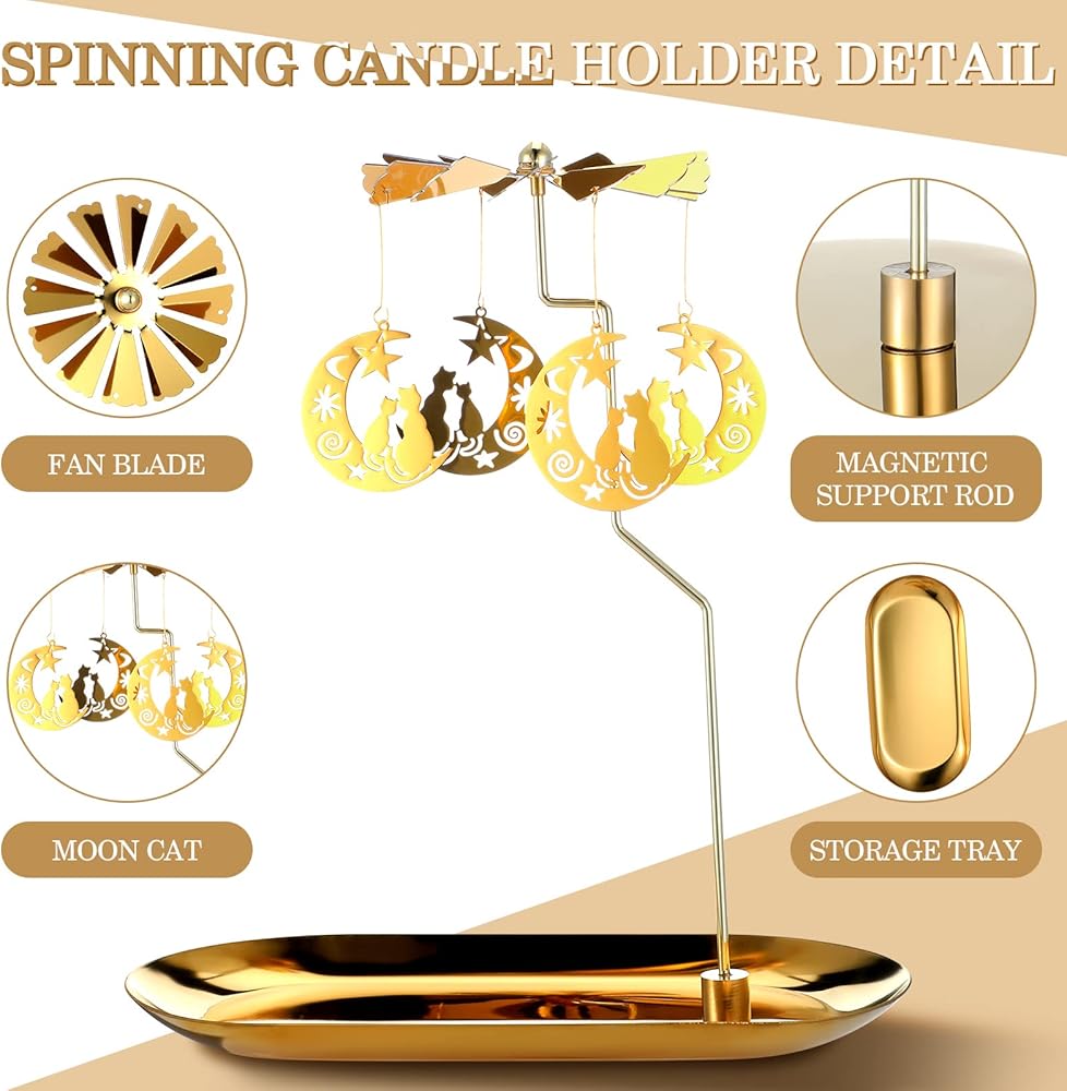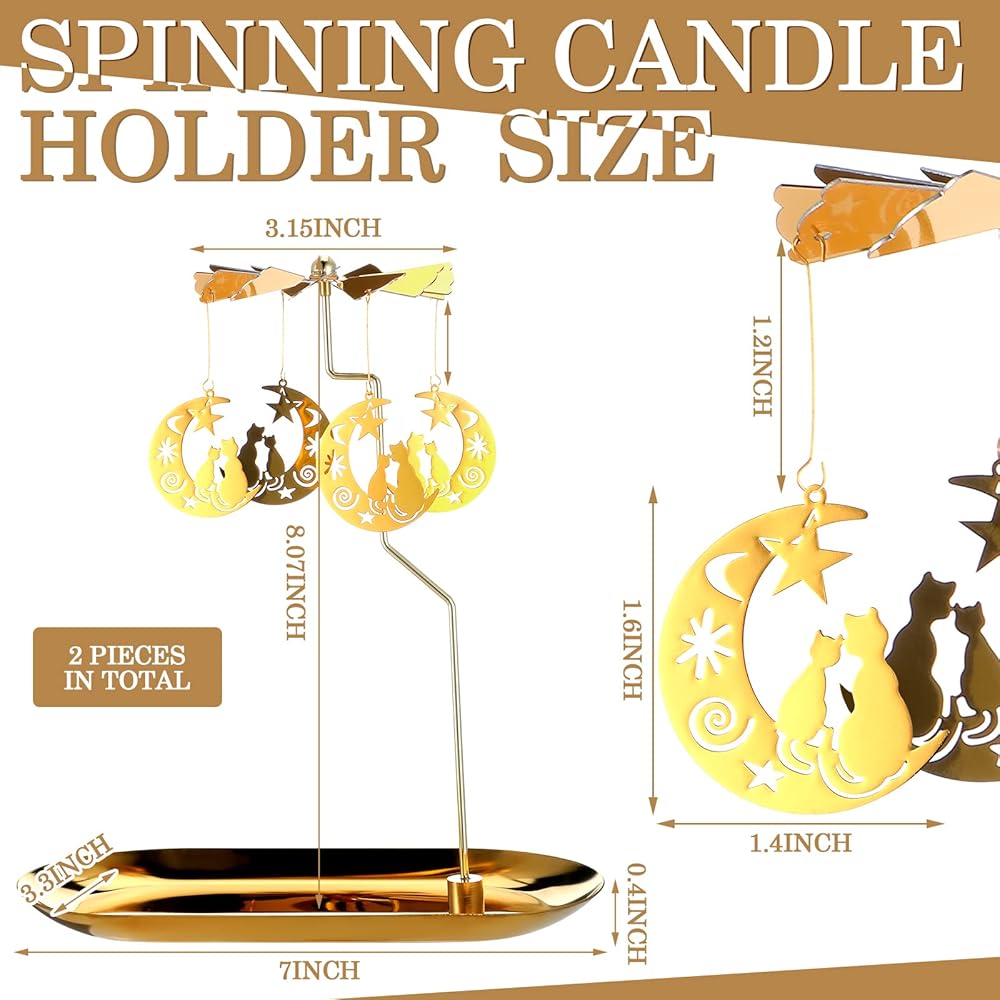• Delicate Combination: you will get 2 sets of spinning candle holders, each set contains 1 moon cat pendant, 1 rod, 1 tray and 1 fan blade, beautiful and nice combination for your daily use; Please note that you need to install them by yourself and candles are not included