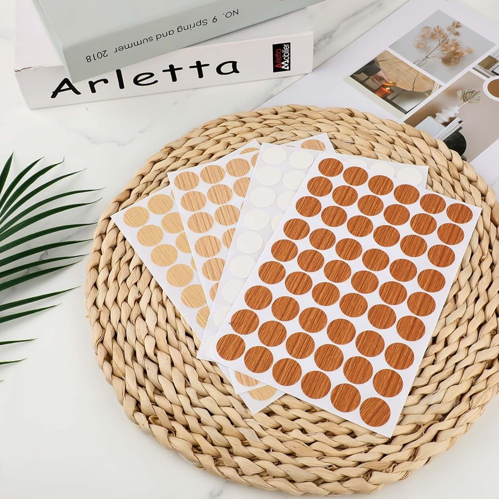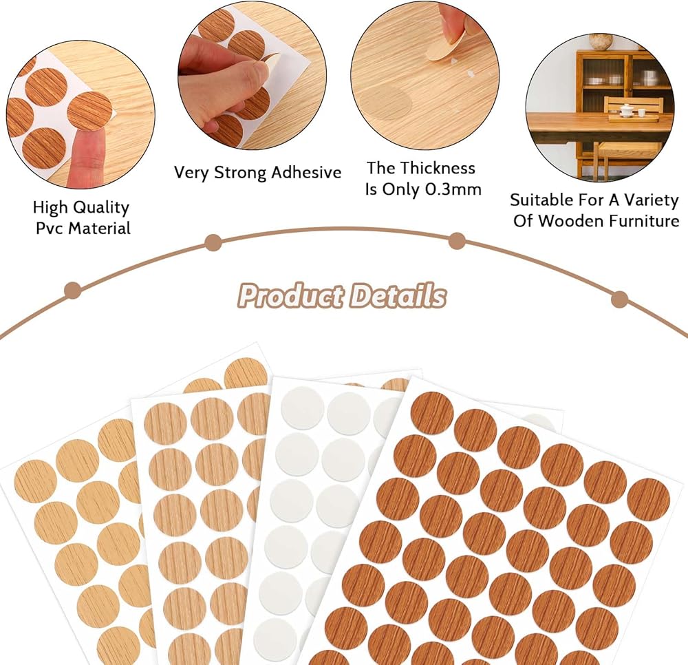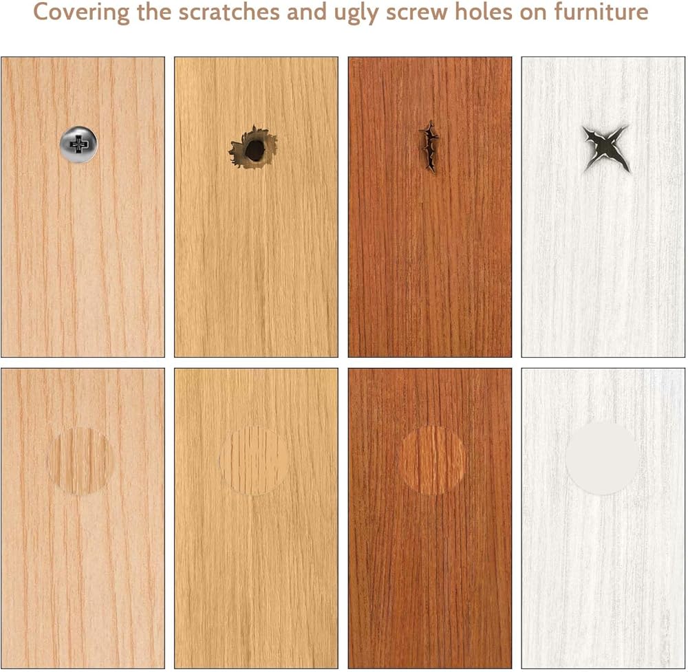 【Wide Application】: These screw covers stickers are appropriate for cabinet nail sets, building bookcases, table holes, wood grain furniture, cabinets, shelves, lamp holes, wooden floors, and other places you want to cover, bringing you lots of conveniences.