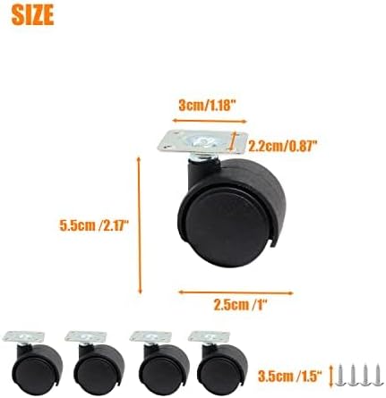 SWZHAI 4Pcs 1 inch Caster Wheels, Nylon Plastic Furniture Casters Swivel Plate Casters, Heavy Duty Replacement Cart Casters Furniture Wheels for Chair, Tables, Kitchen Shelf(Casters Set of 4)