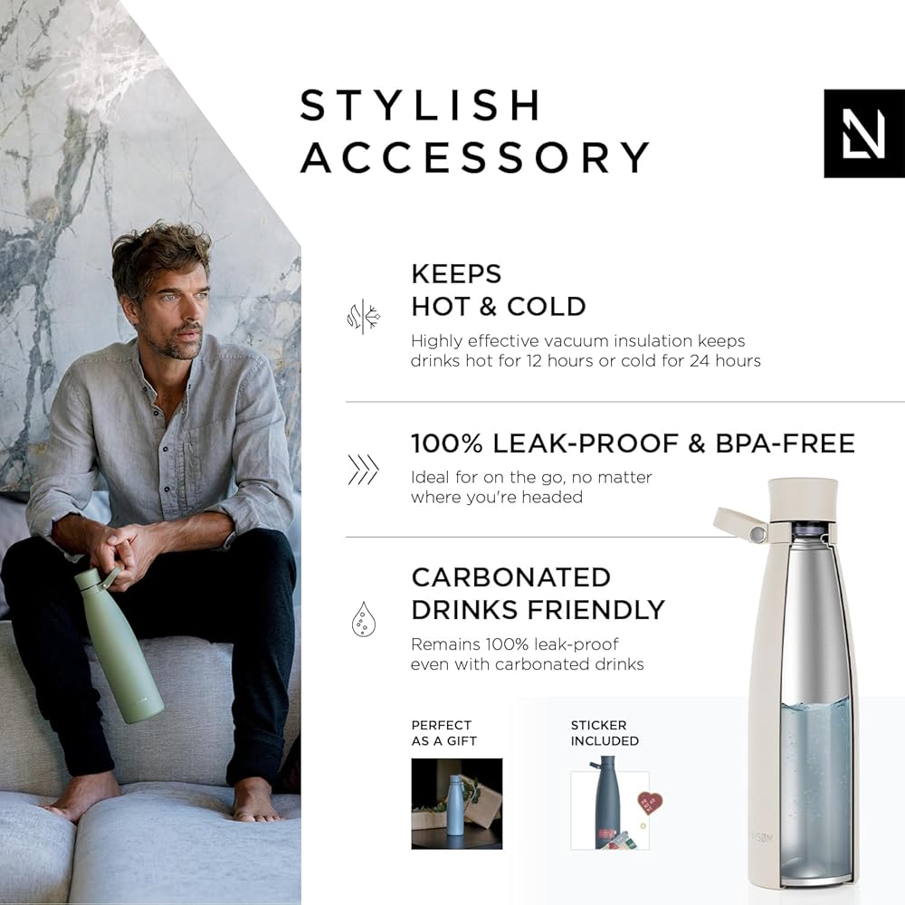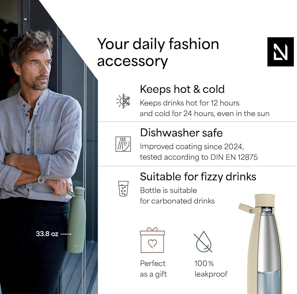 ✅ تصميم عملي I زجاجة الشرب المصنوعة من الفولاذ المقاوم للصدأ من LARS NYSØM هي البديل المستدام للزجاجات البلاستيكية. الارتفاع: 12 بوصة، Ø 3.2 بوصة، المجلد: 34 أونصة، الوزن: 0.95 رطل. مثالي للمكتب أو اليوغا أو اللياقة البدنية أو السيارة.