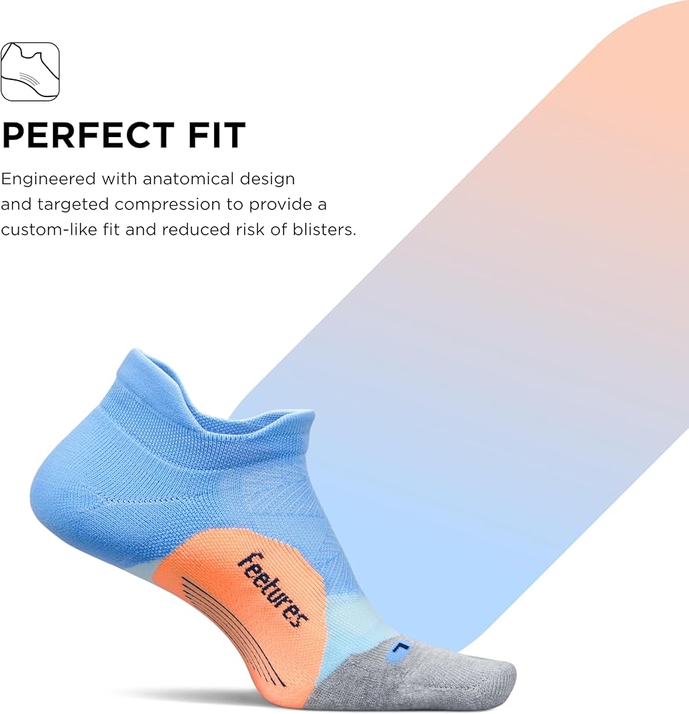 • Sports Sock: These Feetures socks are engineered with Targeted Compression and anatomical design that conform to the left and right structure of the foot providing a custom-like fit and reduced risk of blisters
