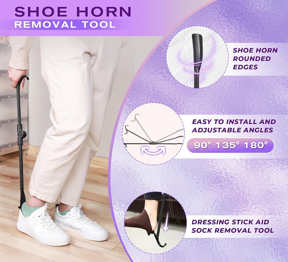 تصميم 3 عبوات: 2 أداة إمساك + 1 قرن حذاء متعدد الوظائف بمقبض طويل - واحد 32 بوصة وواحد 44 بوصة مع فك دوار + قرن حذاء بمقبض قابل للتعديل 32 بوصة.
