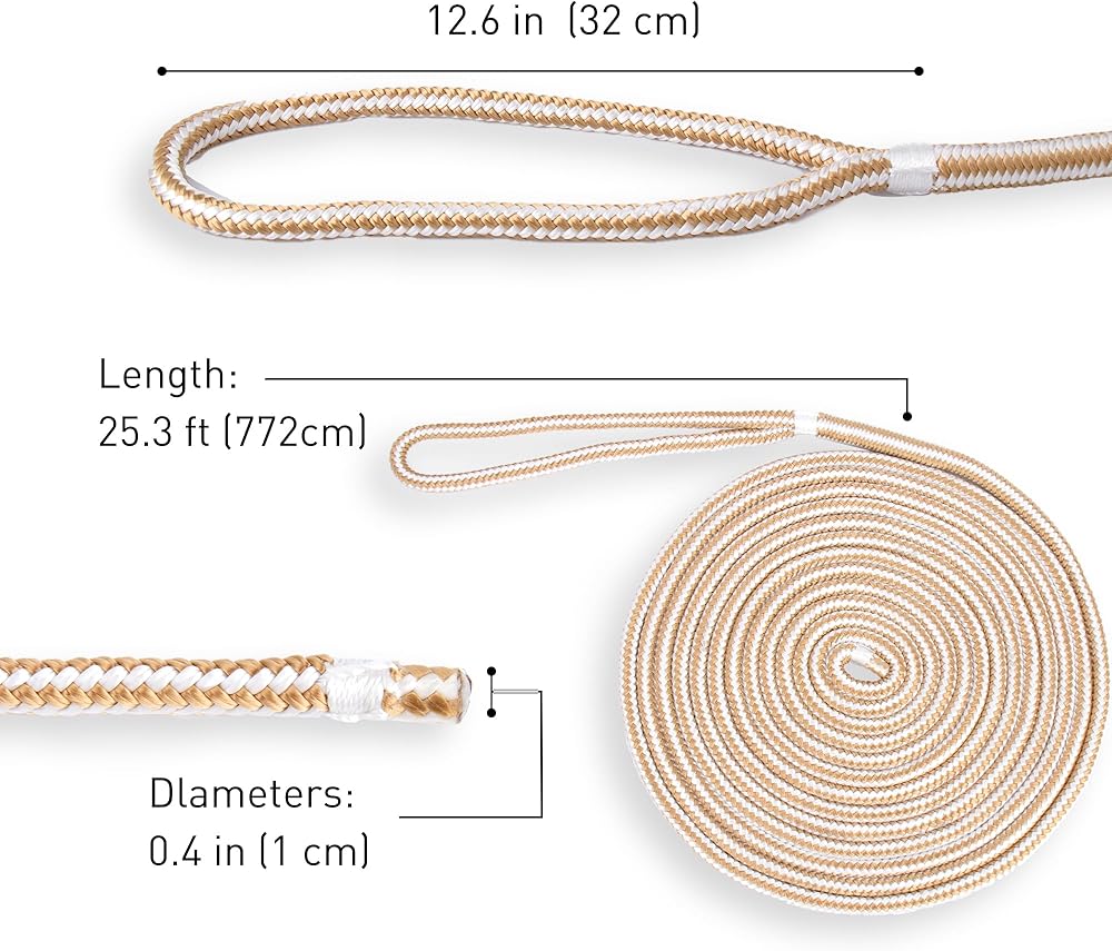 خطوط قفص الاتهام مزدوجة مضفرة من النايلون (L: 25 قدمًا. D: 1/2 بوصة العيينة: 12 بوصة) حبل رباط بحري حبل رصيف القارب (قطعة واحدة)