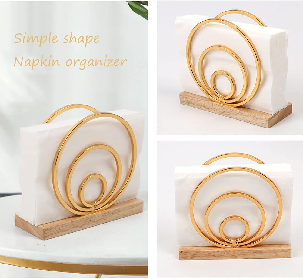 Product Size: This is a cute little cocktail napkin holder measuring around 12.7x11.3x6 cm/5x4.4x2.4 inches. Material:Made of oak and stainless steel, it is stable and durable.