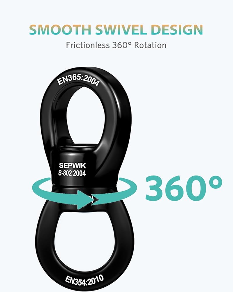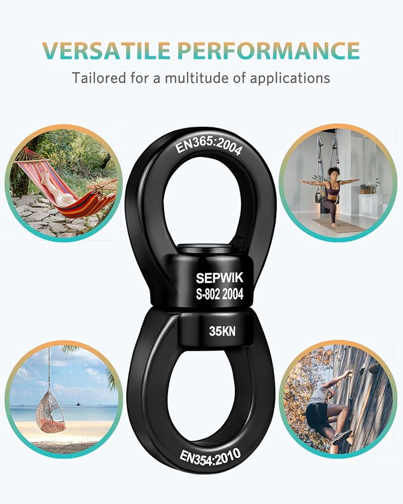 ✔️ أداء متعدد الاستخدامات - مصمم للعديد من التطبيقات، يُعد الدوار المتأرجح الخاص بنا الحل الأمثل لمختلف احتياجات التثبيت والتعليق. مثالية لعشاق التسلق، فهي بمثابة عنصر أساسي لإعدادات تسلق الصخور، وأراجيح الإطارات، وتركيبات أرجوحة الأشجار، ومجموعة واسعة من أجهزة التعليق. من الأراجيح الشبكية إلى الحرير الهوائي، استمتع بأداء آمن وموثوق في جميع المجالات.