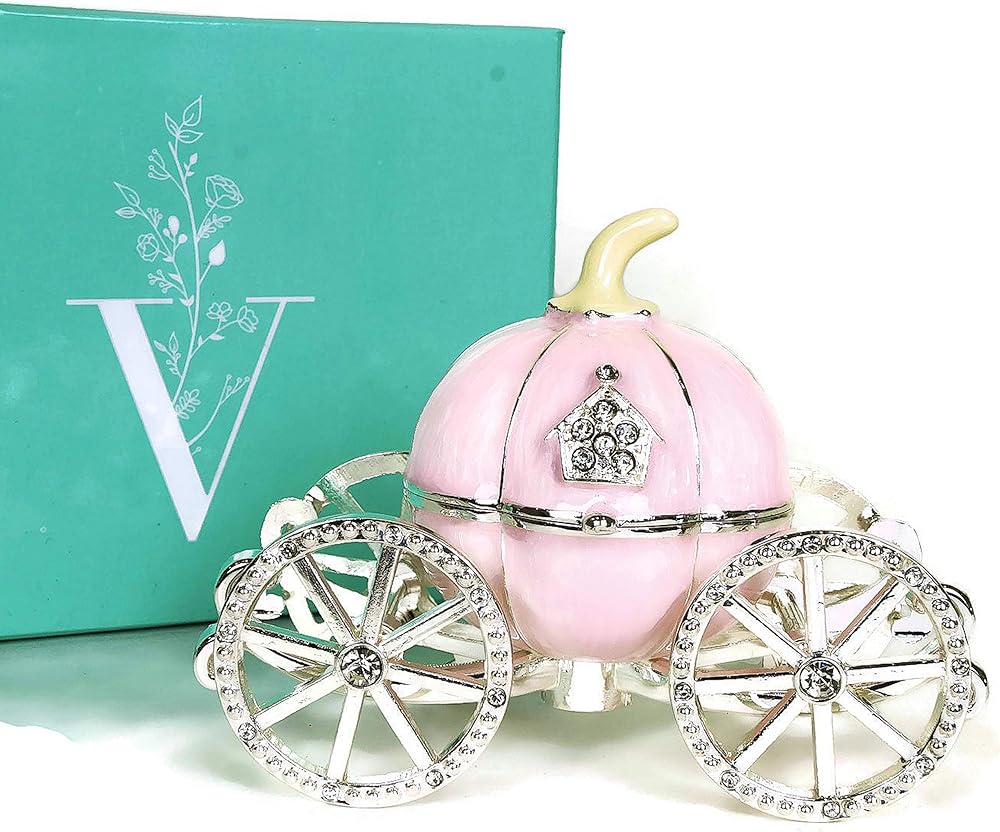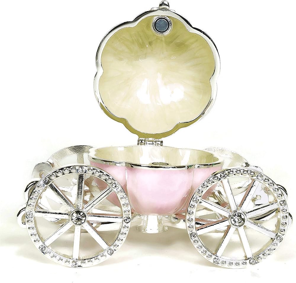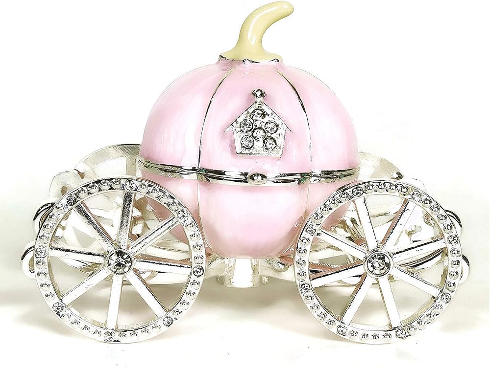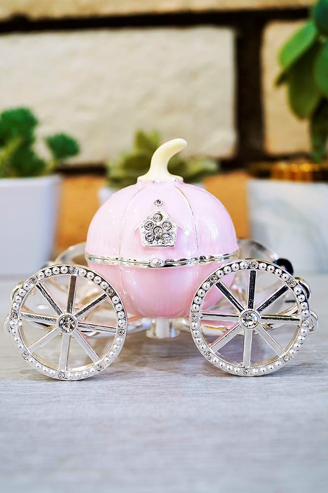 • DECORATED: This trinket box is covered with silver rhinestones on both the pumpkin and the wheels