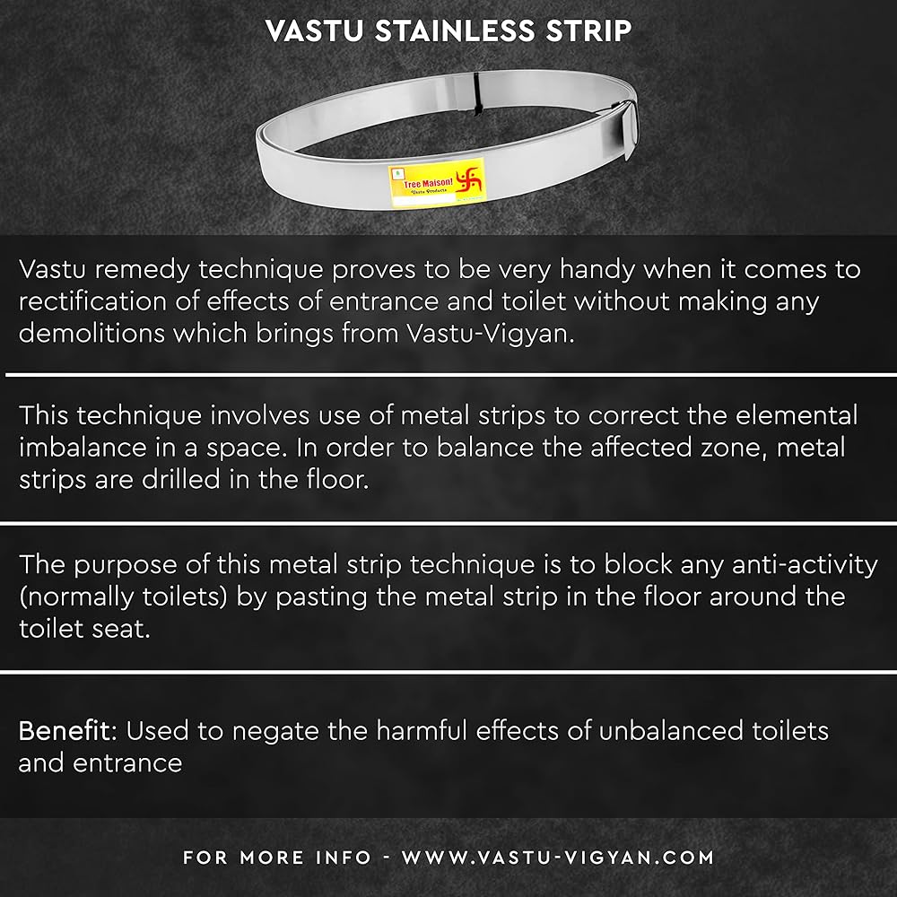 Metal strips are the best and most permanent Vastu remedy for treating toilets and correcting entrances without the need for demolition.