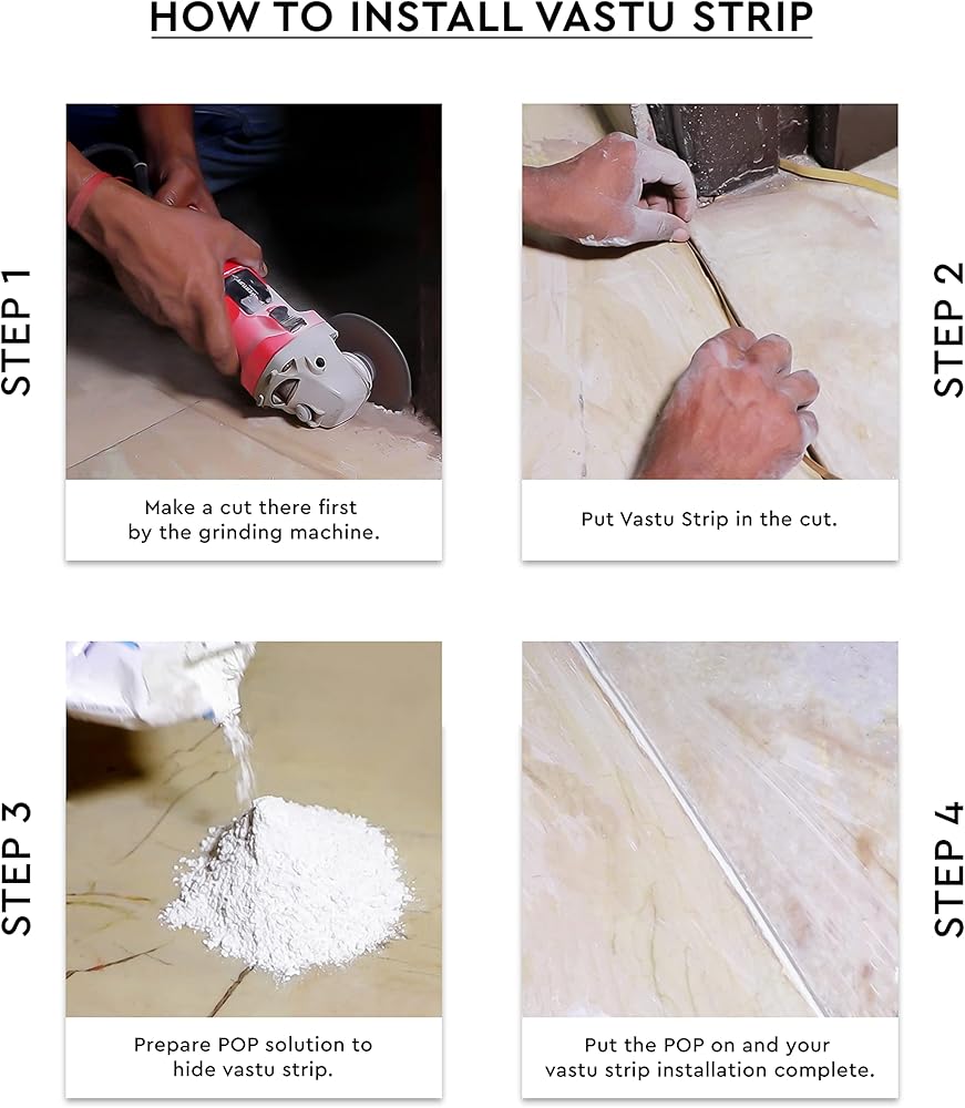 This strip are used for Vastu Dosh Correction of toilets, at the entrances, for balancing the five elements at house, Space surgery etc. This Elemental Strip technique involves the use of different strips to correct the elemental imbalance in a space. In order to balance the affected zone, Metal strips are inserted on the floor vertically by cutting/drilling on the floor.