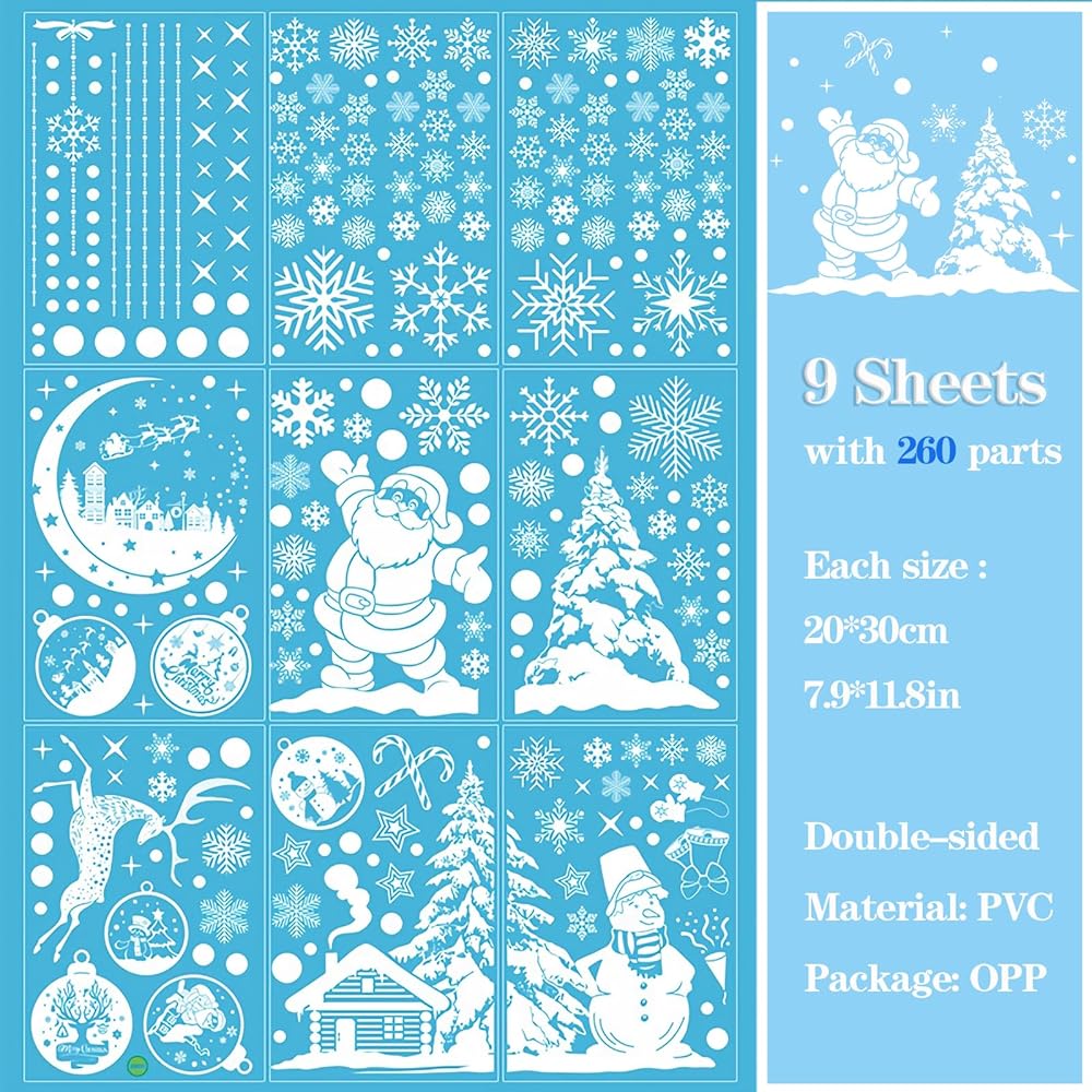 ملصقات نافذة عيد الميلاد PVC 2024 - ملصقات نوافذ عيد الميلاد ساتا كلوز الثلجية، شارات عيد الميلاد للمنزل والمتجر لتزيين عيد الميلاد (20 × 30 سم × 9 أوراق، 003)
