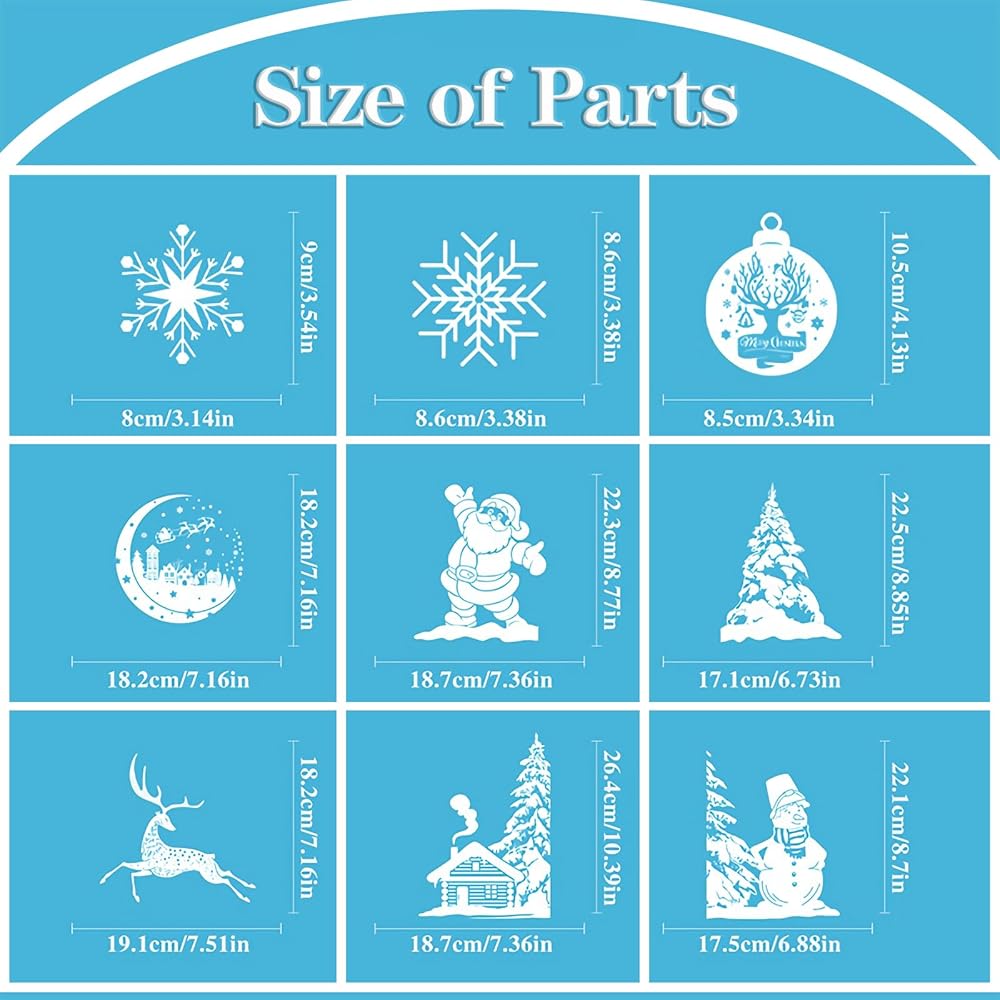 • أنماط موضوع عيد الميلاد: تختتم ملصقات النوافذ عدة أنماط من سانتا كلوز، وشجرة الكريسماس، والأيائل وندفة الثلج، وهي زينة لطيفة لعيد الميلاد للنوافذ الزجاجية.