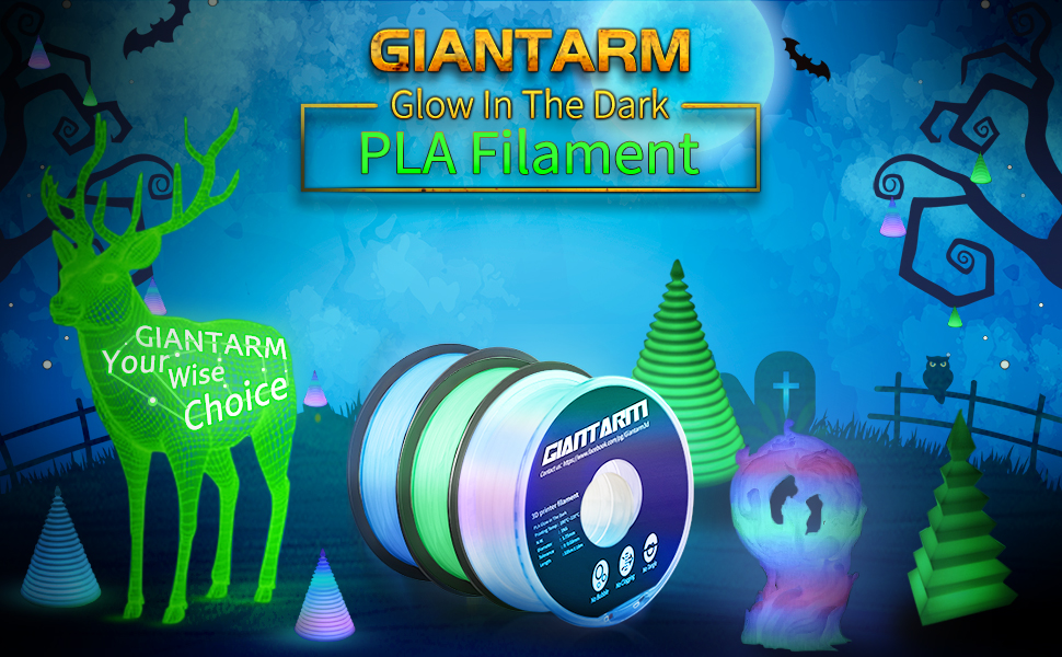 • 【طباعة للمهرجانات والحفلات】يمكن تصنيع خيوط PLA المتوهجة في مطبوعات تتوهج في الليل، وهي مناسبة جدًا لطباعة ديكورات الحفلات وعيد الشكر وعيد الميلاد، كما أنها مناسبة أيضًا للعصي المتوهجة وأغطية المصابيح والنماذج، وما إلى ذلك.