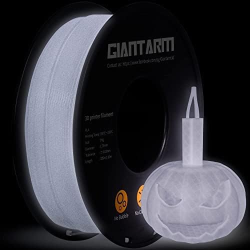 GIANTARM يتوهج في الظلام، خيوط PLA المضيئة 1.75 مم، دقة الأبعاد +/- 0.03 مم، بكرة 1 كجم (2.2 رطل)، مناسبة لمعظم الطابعات ثلاثية الأبعاد (أبيض متوهج)