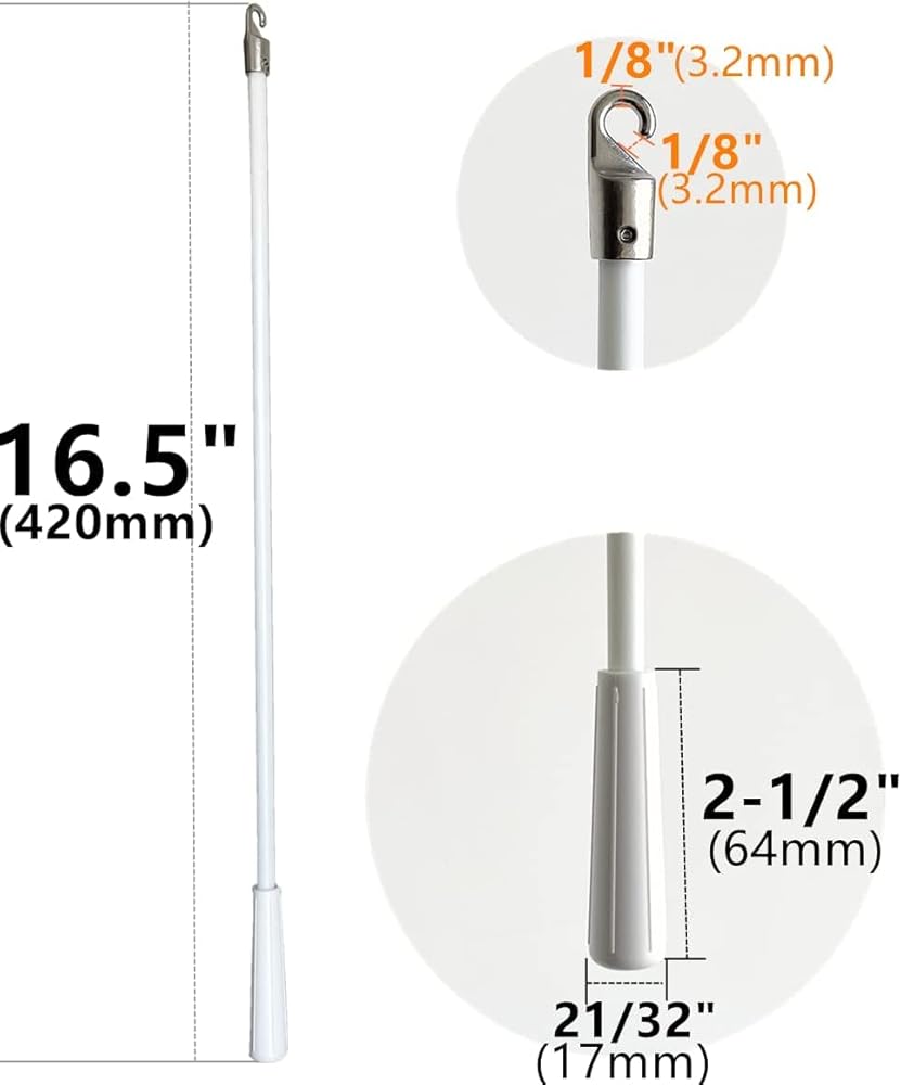 3pcs 16inch 400mm Length Drapery Wand Curtain Pull Rod Fiberglass Material Blind Wand Vertical Blinds Rod with Hook Blind Opener Stick Tilt Rod