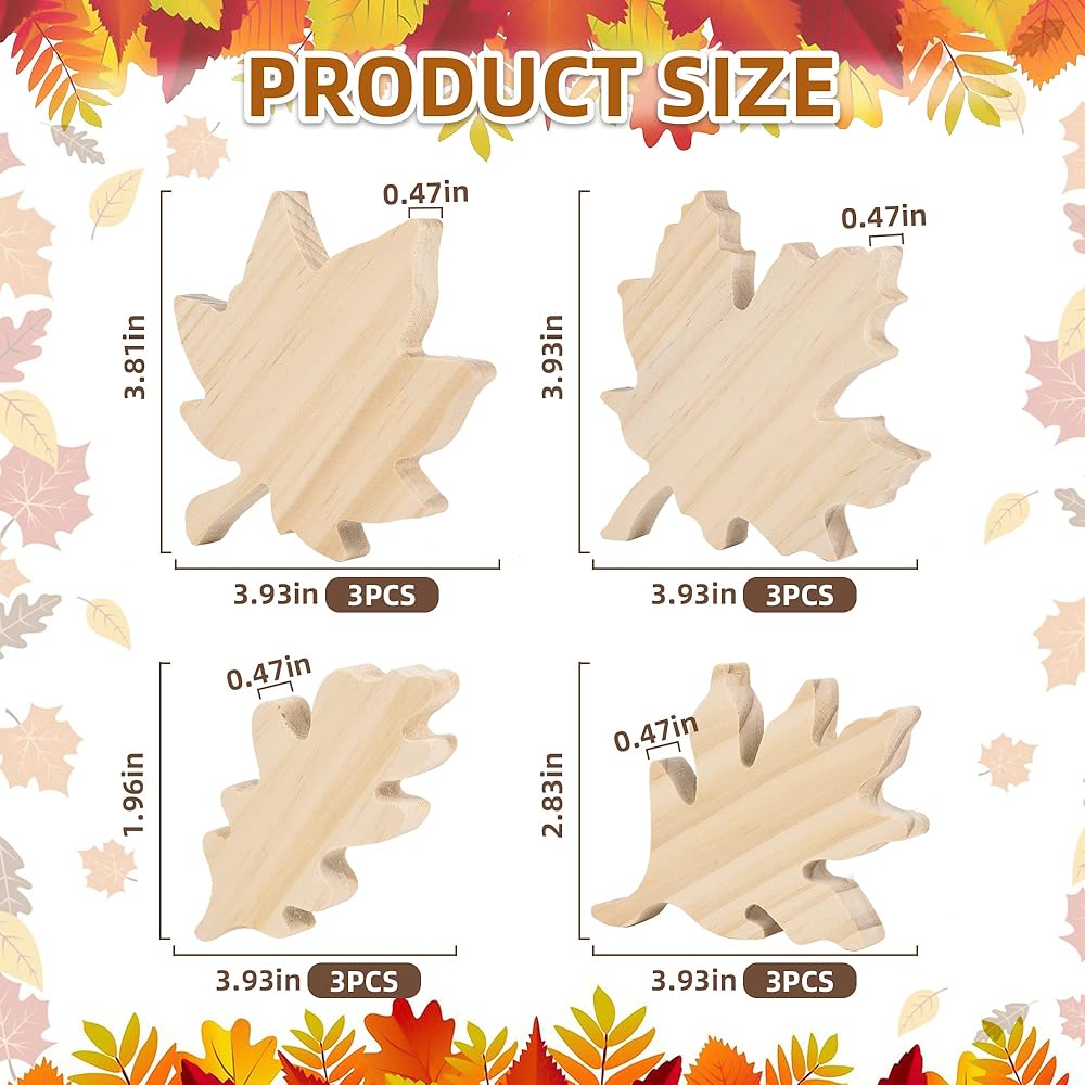 Get Creative with Package Content: Get ready for fall with our set of 12 wooden maple leaf cutouts in various shapes and designs, these leaves cutouts are sure to add a special touch to your home decor