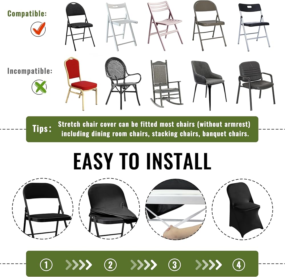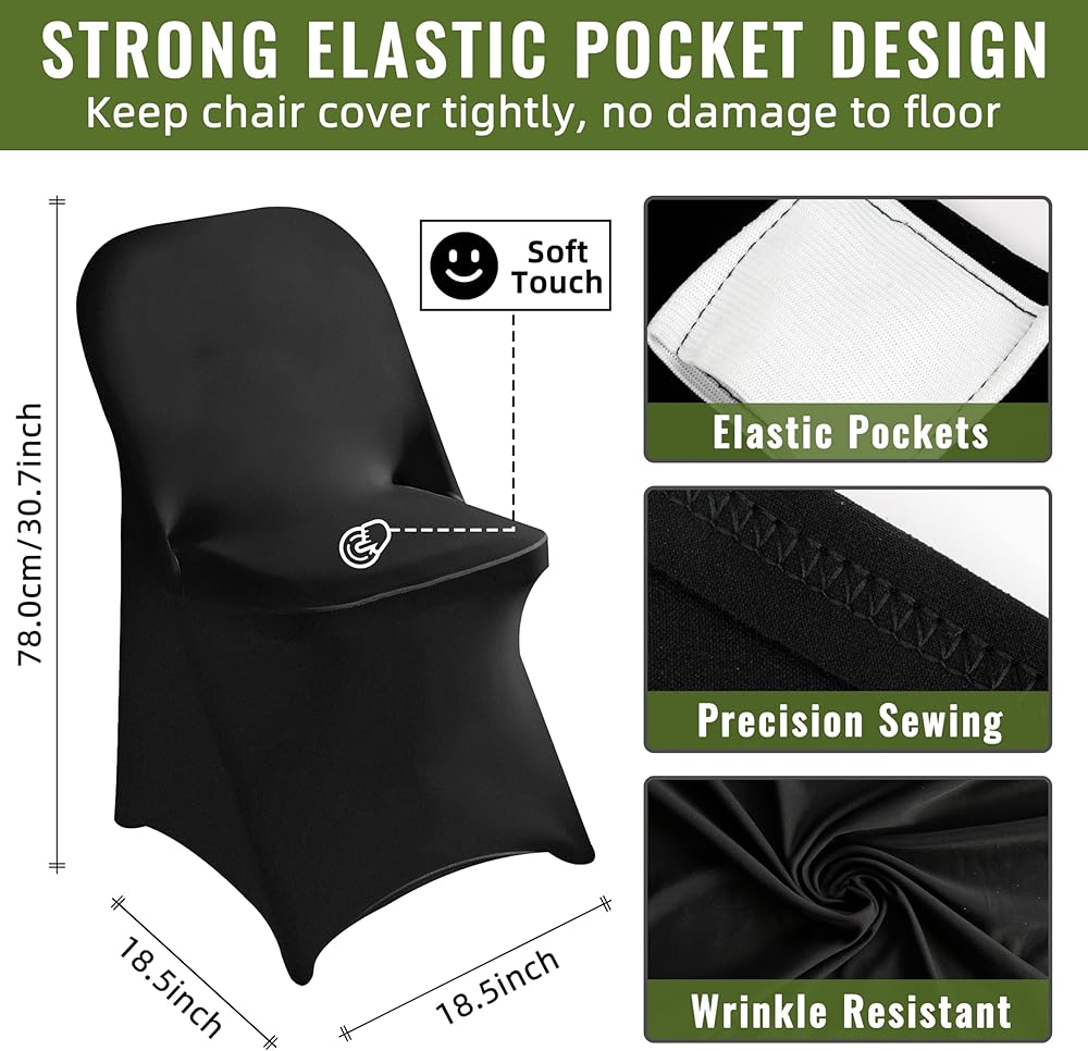 【حماية رائعة】يحتوي غطاء كرسي الولائم على 4 جيوب مرنة للقدم، قوي ومتين، مما يضمن تغطية كل جزء من الكرسي، ويتم عرض واقي غطاء الكرسي بالتساوي، لذلك لا يمكنك رؤية أرجل الكرسي من أي زاوية.