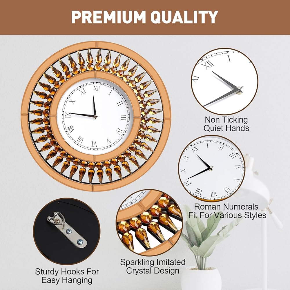 • 【متعددة الاستخدامات لأنماط مختلفة】مصنوعة من الأكريليك البني، تصميم كريستال مقلد لامع، مع أرقام رومانية، ساعات الحائط متعددة الاستخدامات هذه التي تعمل بالبطارية تناسب معظم الديكورات سواء كانت بلدًا فرنسيًا، أو مزرعة ريفية، أو عتيقة، أو تقليدية، أو كلاسيكية، أو رثة، أو أنيقة في منتصف القرن. ..