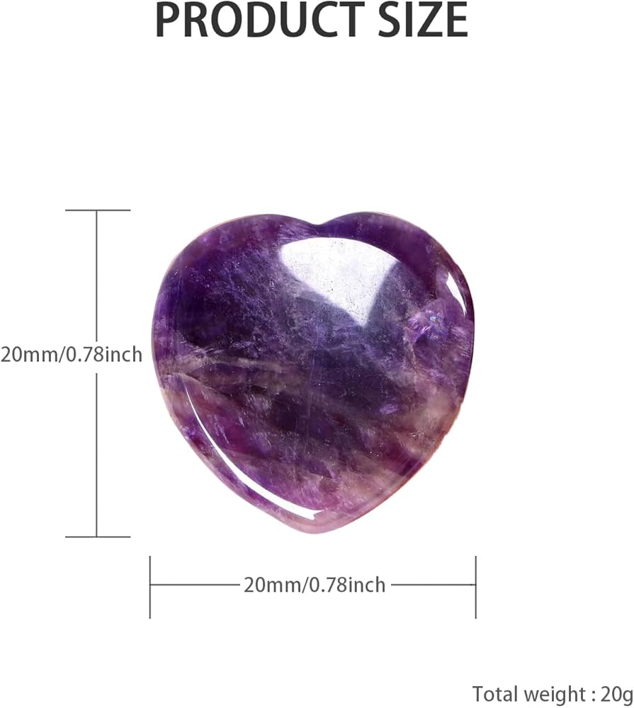 تتضمن العبوة - قطعتين من الكريستال على شكل قلب. تتضمن قطعة واحدة من حجر الكوارتز الوردي وقطعة واحدة من حجر الجمشت.