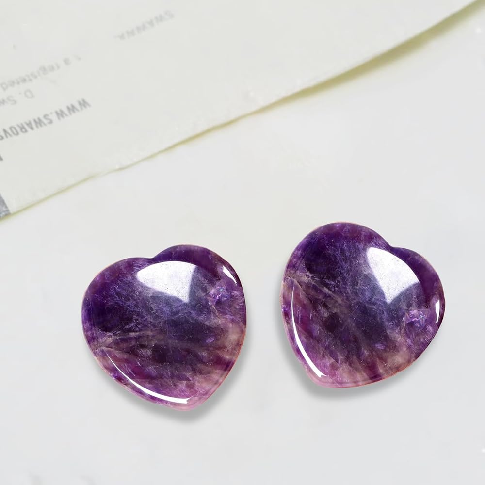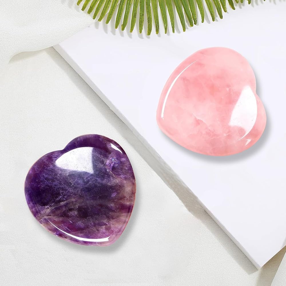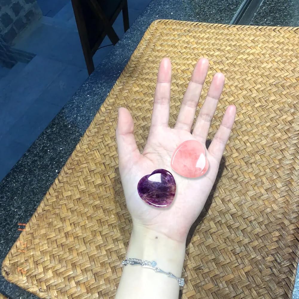قطعتان من أحجار القلق للقلق، مجموعة بلورات الشفاء، حجر الجمشت الوردي الكوارتز القلب كريستال، أحجار الشفاء الطبيعية للاسترخاء حجر النخيل لتخفيف التوتر والقلق والتأمل