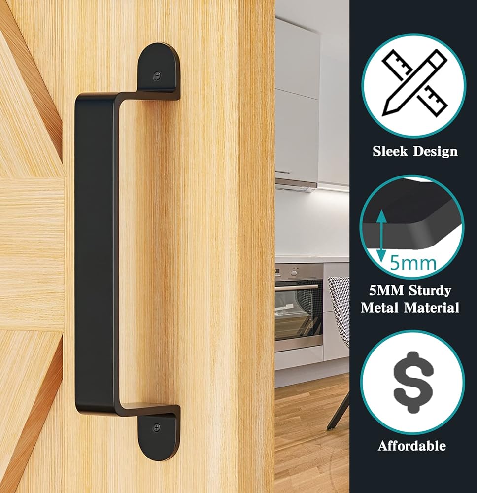• طلاء مسحوق أسود غير لامع حديث، التصميم الأملس يبدو أنيقًا وجميلاً. يمكن استخدام مقبض باب الحظيرة الأسود الفولاذي عالي الجودة للأبواب، والبوابات، والجراجات، والحظائر، والسقائف، والخزائن، والأبواب المنزلقة، وما إلى ذلك - اختر من بين مجموعة متنوعة من الأنماط لتزيين منزلك، واللمسة النهائية السوداء تتناسب مع جميع أنواع الديكور .