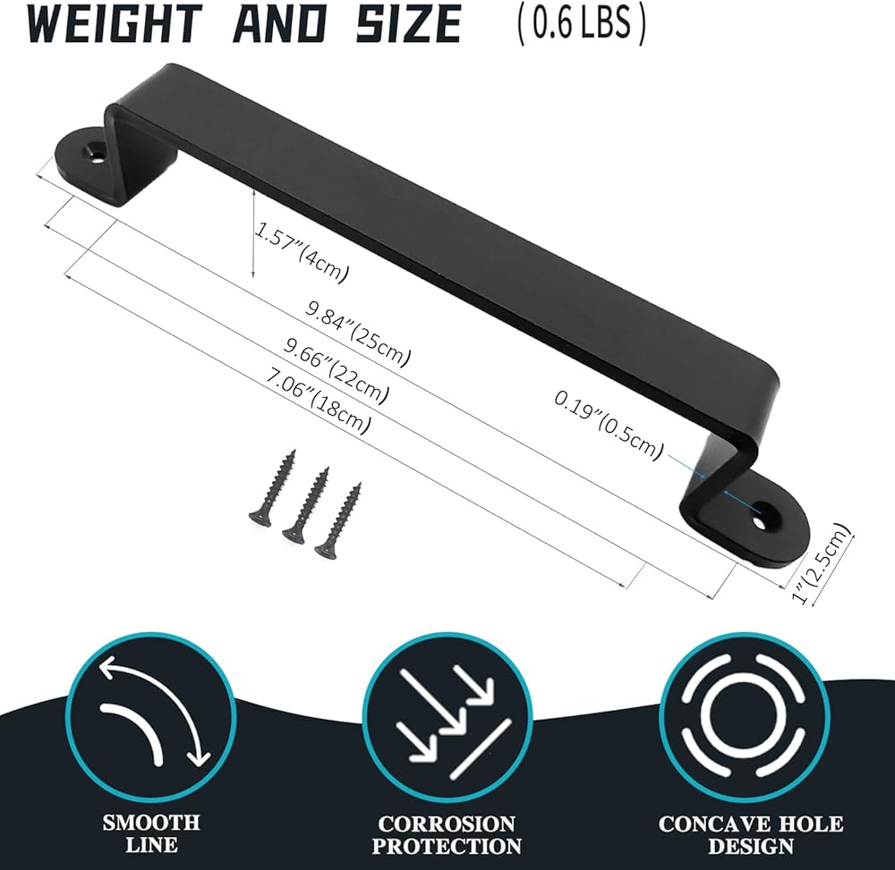 • "متعدد الوظائف - يتيح تصميمه استخدامه كإضافة راقية لديكور منزلك الداخلي بالإضافة إلى تعزيز السحر الريفي لباب الحظيرة أو البوابة أو السقيفة أو المرآب. تنطبق هذه الزخرفة والديكور على الأبواب ذات الألوان المختلفة مقبض باب الحظيرة الوظيفي مسطح مع تشطيب مربع مما يجعل الخطوط واضحة وأنيقة.