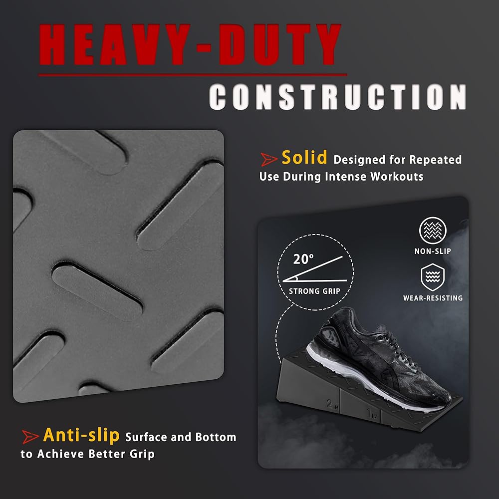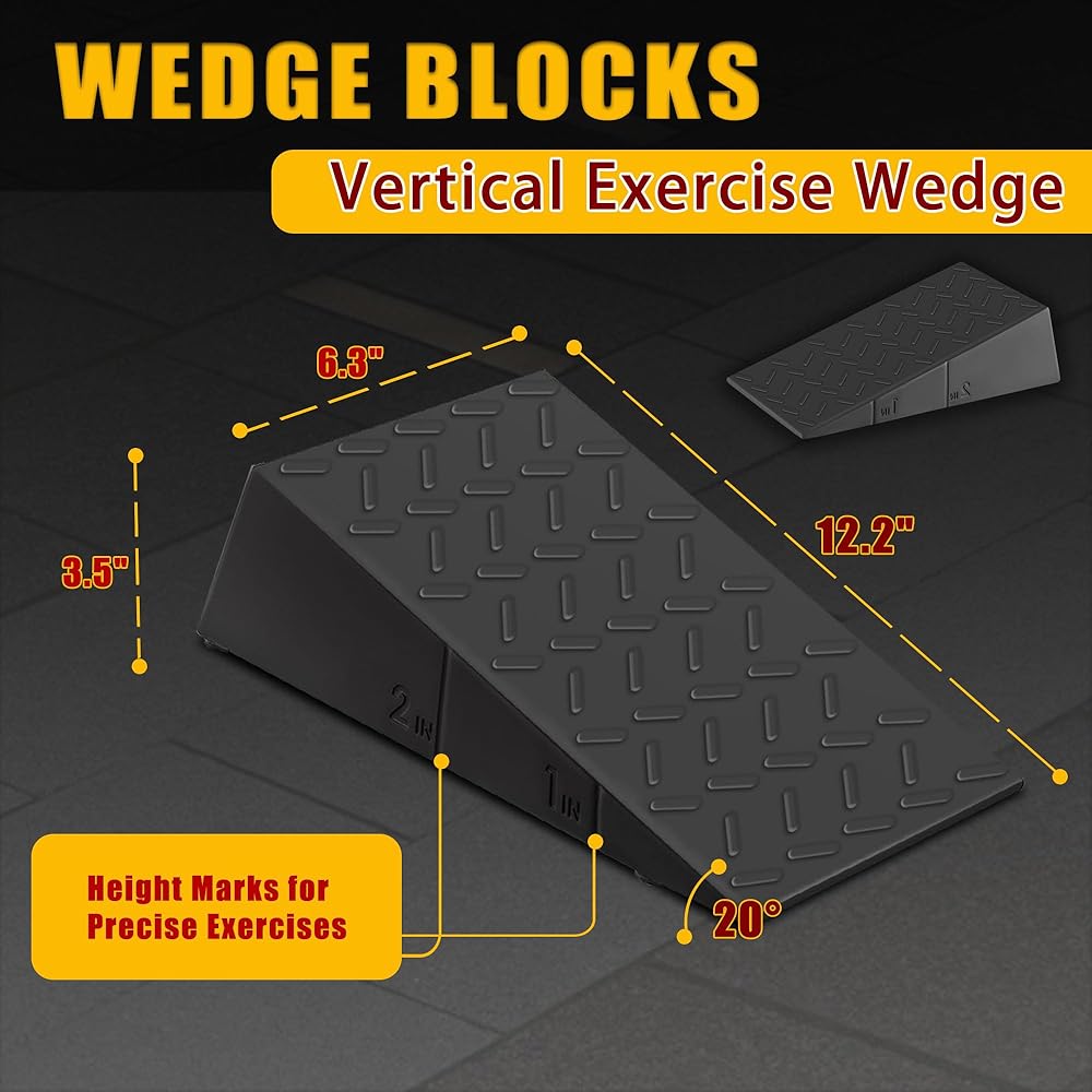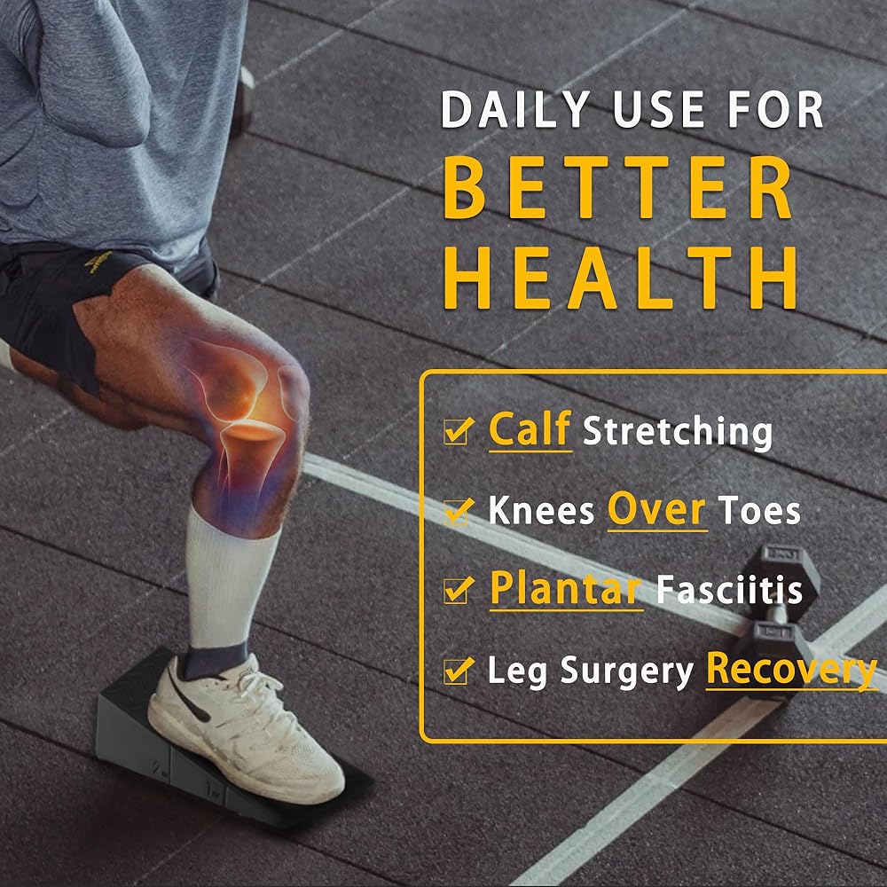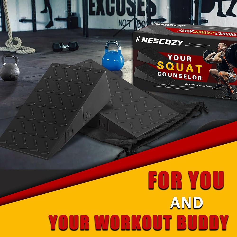 لوح مائل للقرفصاء: رفع الكعب بأوتاد القرفصاء لا يسمح فقط بشكل أفضل عن طريق تغيير زاوية مفصل الكاحل، وتعزيز نطاق الحركة ولكنه يوفر أيضًا المساعدة للأفراد الذين يعانون من قيود على الحركة مثل الكاحلين أو الساق الضيقة، مما يساعد على التعويض عن ذلك. القيود وتحقيق أداء أفضل