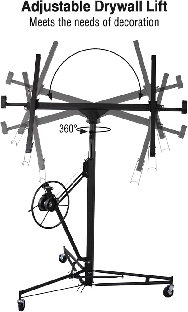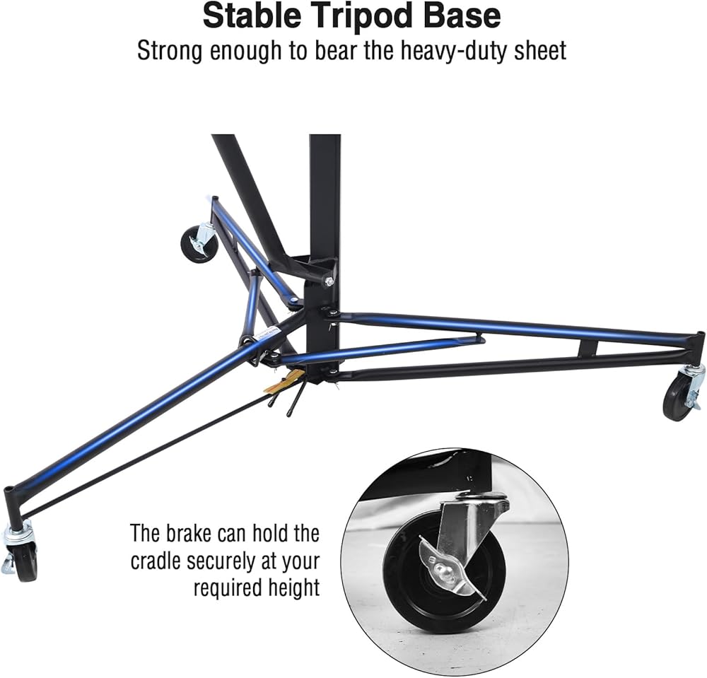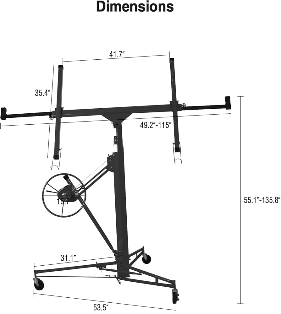 • 【Sturdy and Safe to Use】Our 11ft drywall lifter complies with CE standards, and also comes equipped with a built-in winch and brake system, streamlining drywall installation to save you time and energy. When you operate at a fixed point, the 4" caster wheels can be locked to ensure your safety, which further enhances safety and stability during use.