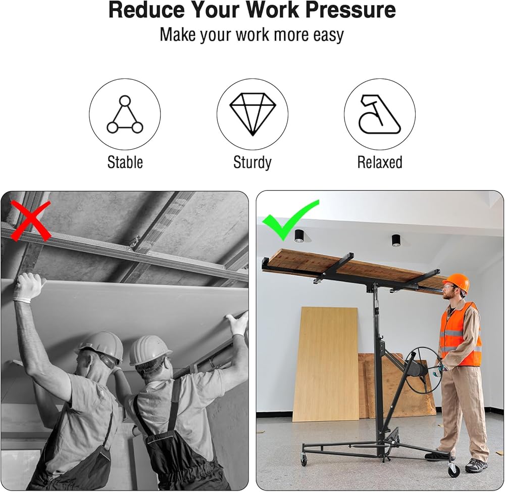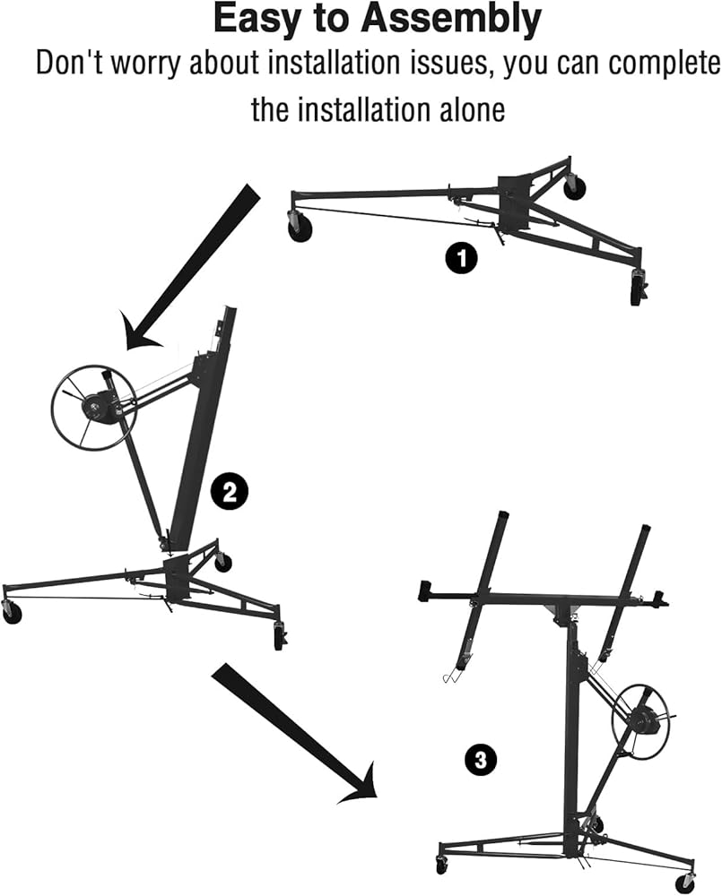 • 【Easy to Assemble & Disassemble】The drywall hoist is easy to assemble and disassemble without tools. You can quickly complete the drywall jack lift's assembly alone.