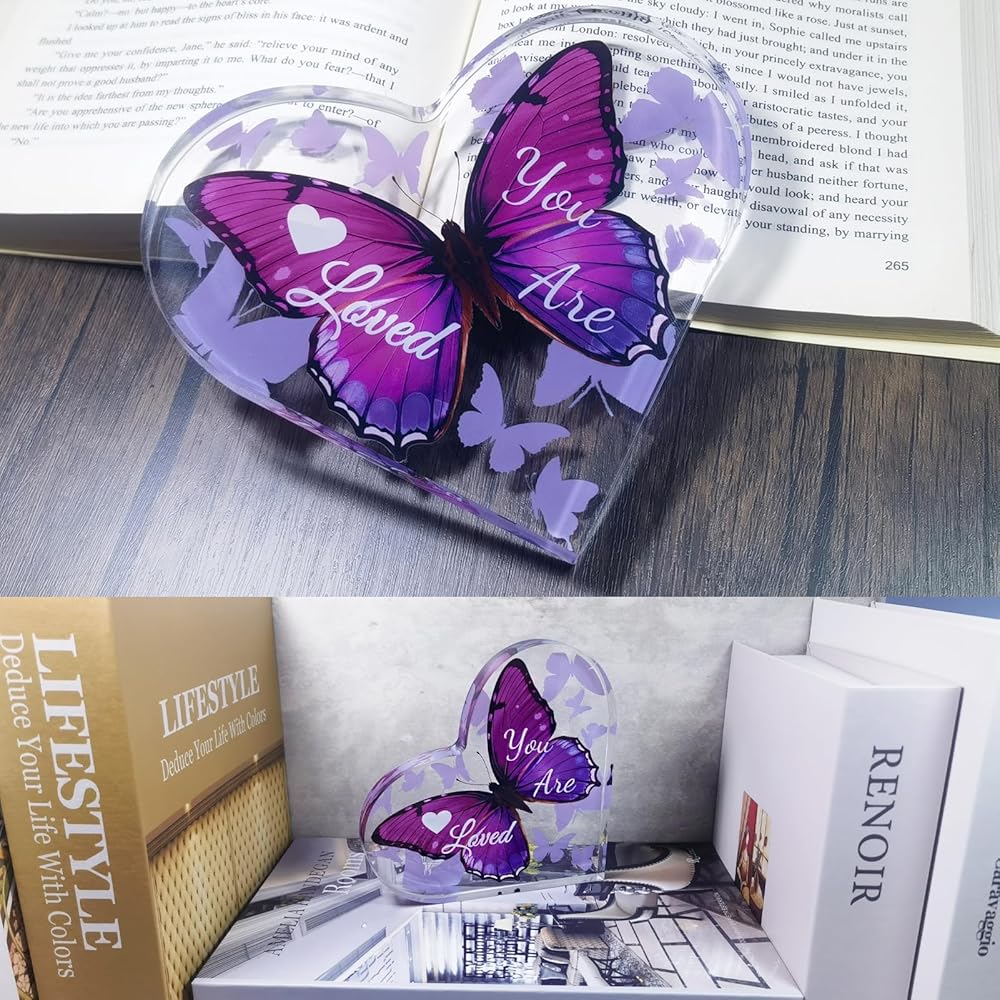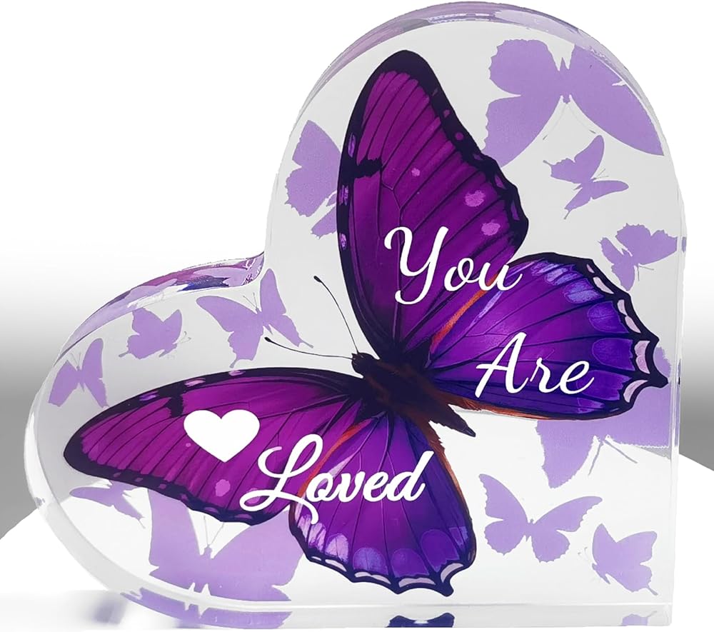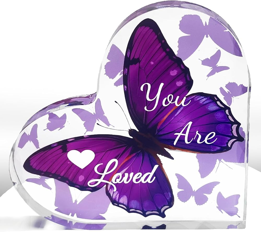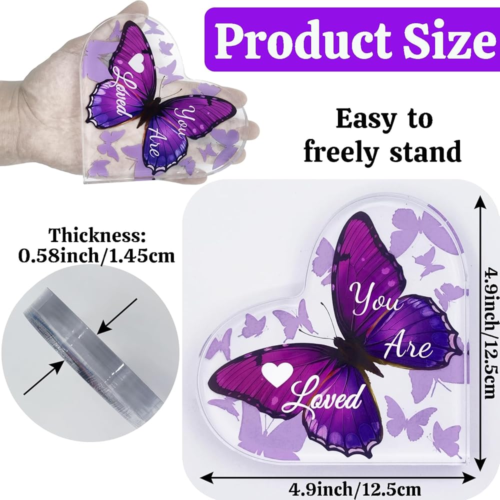 تصميم رائع: هدية تذكارية لصديق من الأكريليك على شكل قلب، مع سطح أملس مريح عند اللمس. مع نمط الفراشة الأرجواني الفريد، الذي يستخدم كديكور للمكتب أو غرفة النوم المنزلية، سيكون ديكور لوحة الأكريليك الأكثر لفتًا للنظر.