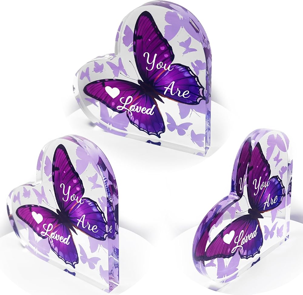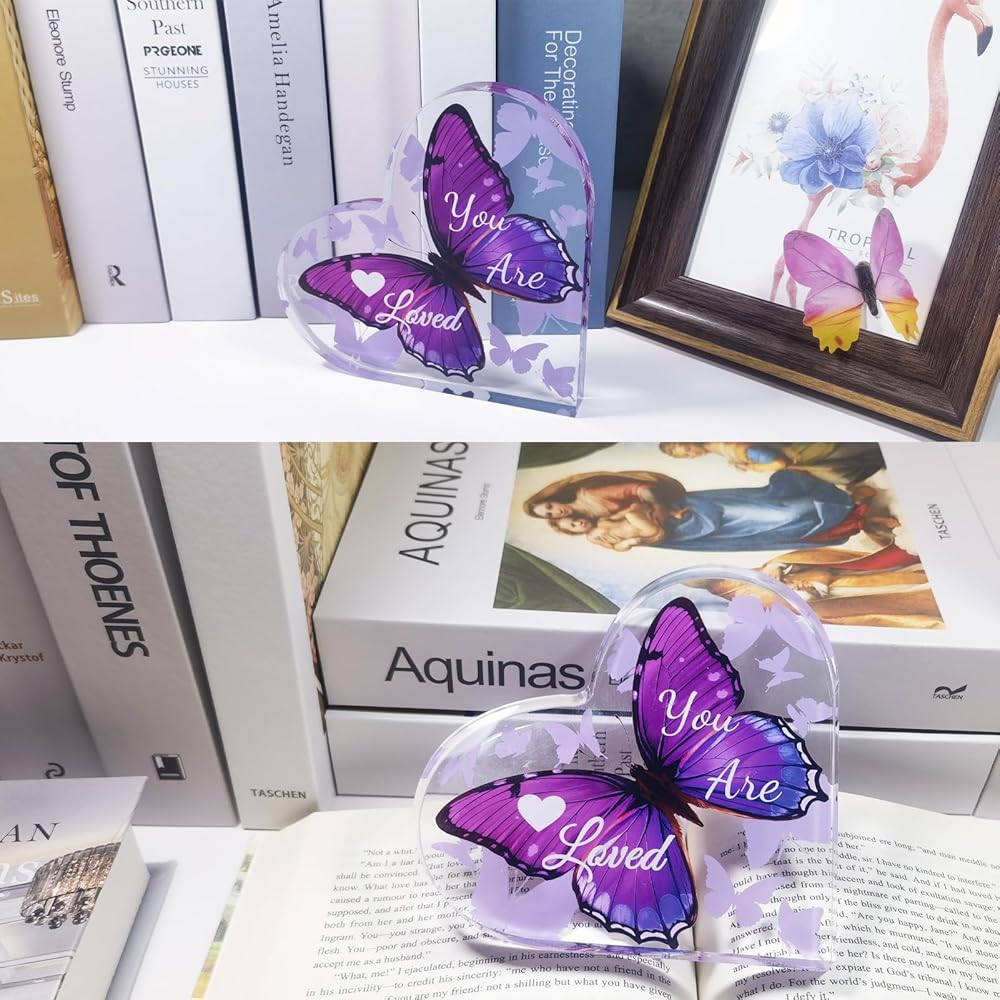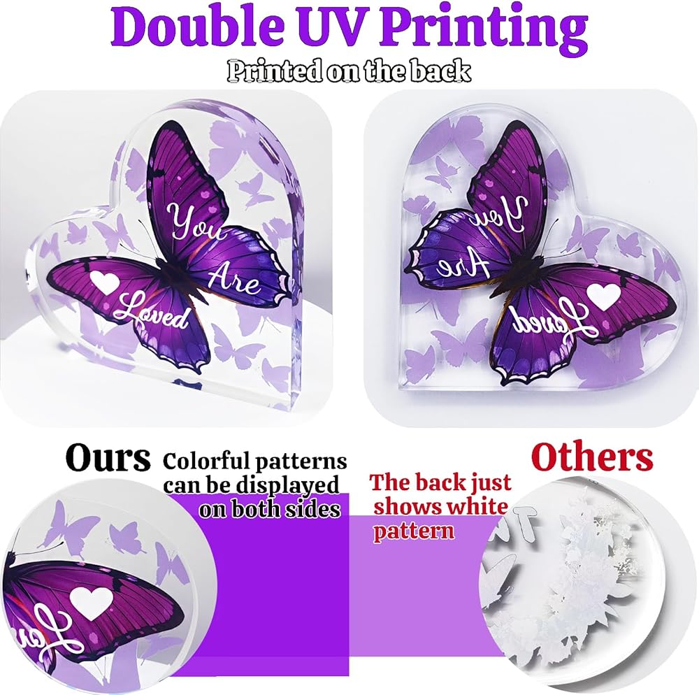 تصميم رائع: هدية تذكارية لصديق من الأكريليك على شكل قلب، مع سطح أملس مريح عند اللمس. مع نمط الفراشة الأرجواني الفريد، الذي يستخدم كديكور للمكتب أو غرفة النوم المنزلية، سيكون ديكور لوحة الأكريليك الأكثر لفتًا للنظر.