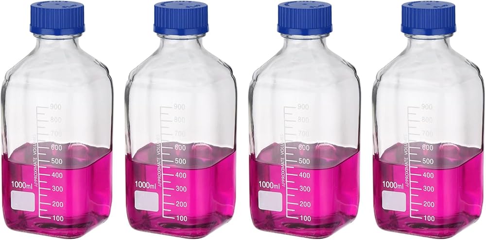 Easy to Read: Package includes 4 pack Media Storage Bottles with a capacity of 500ml, featuring a graduated white printed scale, providing precise measurement and accurate volume readings. The smooth surface of the bottle allows for easy cleaning and ensures clear visibility during experiments or storage.