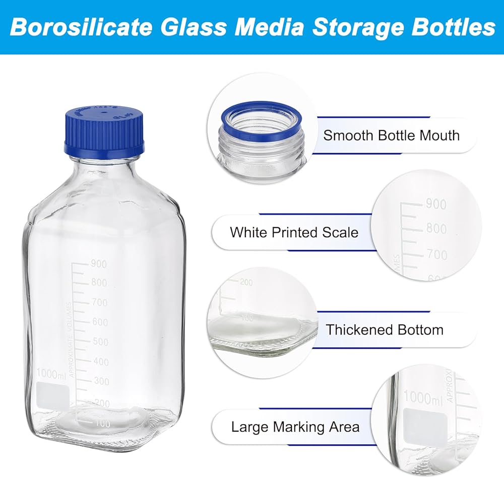 Leakproof: Our Media Storage Bottles are designed with a smooth bottle mouth that perfectly fits the GL32 screw cap, ensuring a tight and secure seal. This leakproof feature prevents any liquid from spilling or leaking out of the bottle, minimizing the risk of evaporation and exposure to external elements.